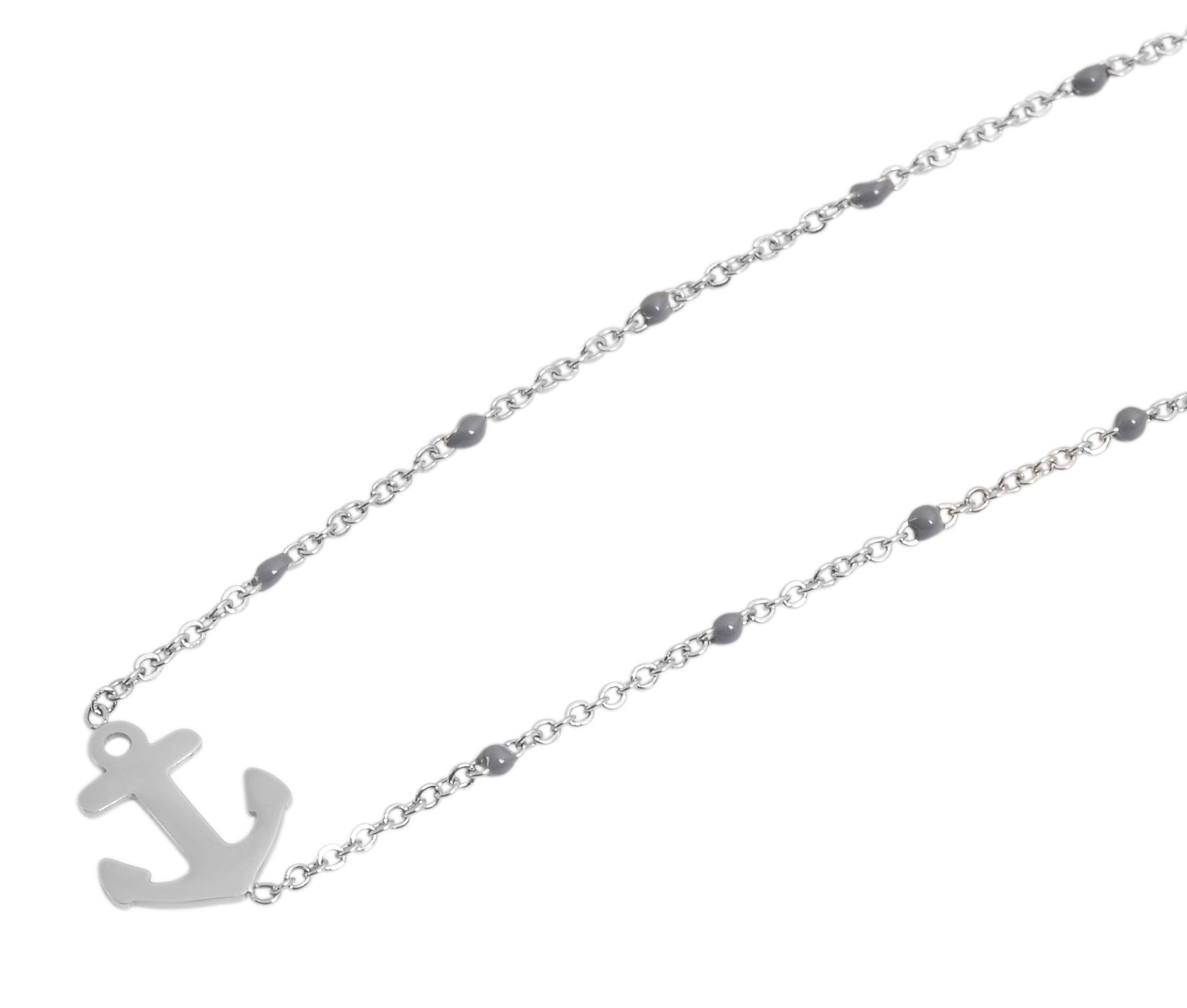 Akzent Ankerkette aus Edelstahl, Ankeranhänger, 43+5 cm, silberfarben/grau
