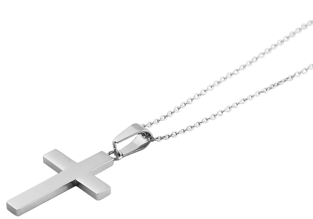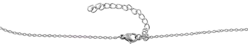 Die Anker-Halskette der Marke Akzent wurde aus Edelstahl gefertigt und ist in silber- oder goldfarben erhältlich. Mit einem Edelstahl-Karabinerverschluss wird die Kette hinten am Hals gesichert. Die Länge der Kette beträgt 45 cm und kann bei Bedarf um 5 cm verlängert werden. Die Kettenstärke beträgt 1 mm. Zudem verfügt die Halskette über einen Kreuzanhänger, ebenfalls aus Edelstahl, der sich auf der Vorderseite glänzend und auf der Rückseite matt präsentiert. Der Anhänger besitzt eine Länge von 33 mm ohne Öse und 42 mm mit Öse, eine Breite von 21 mm und eine Stärke von 2 mm. Diese Maße erlauben kleinere Gravuren auf Vorder- und Rückseite des Kreuzes.