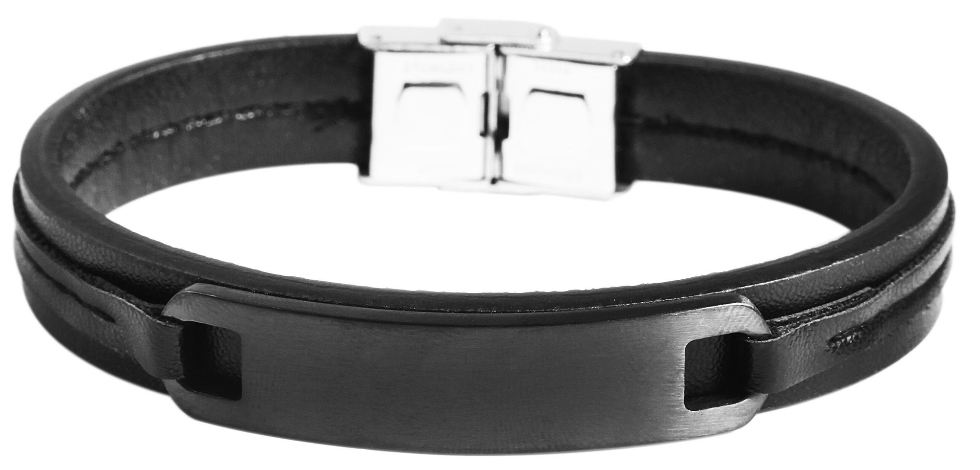 Produktinformationen "Akzent Armband aus Echtleder und Edelstahl, schwarz/schwarz"
