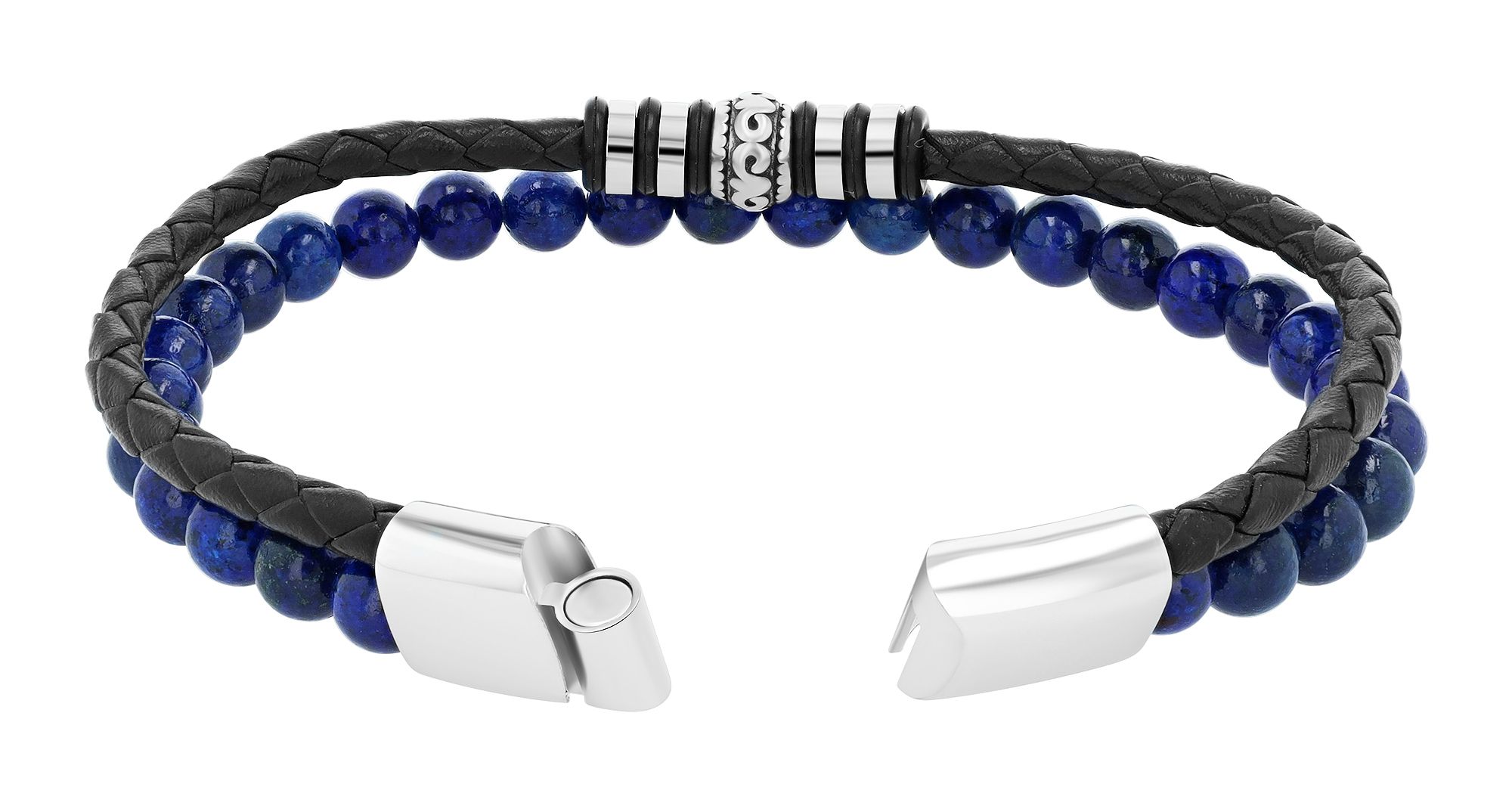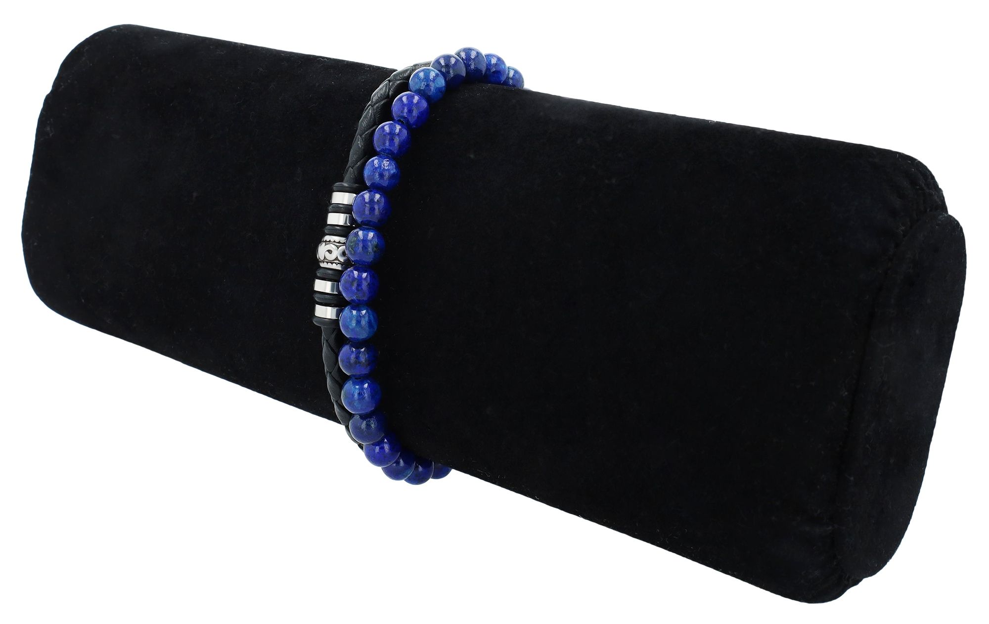 Produktinformationen "Akzent Armband aus Leder und Lapis Lazuli Perlen + Edelstahlelemente"