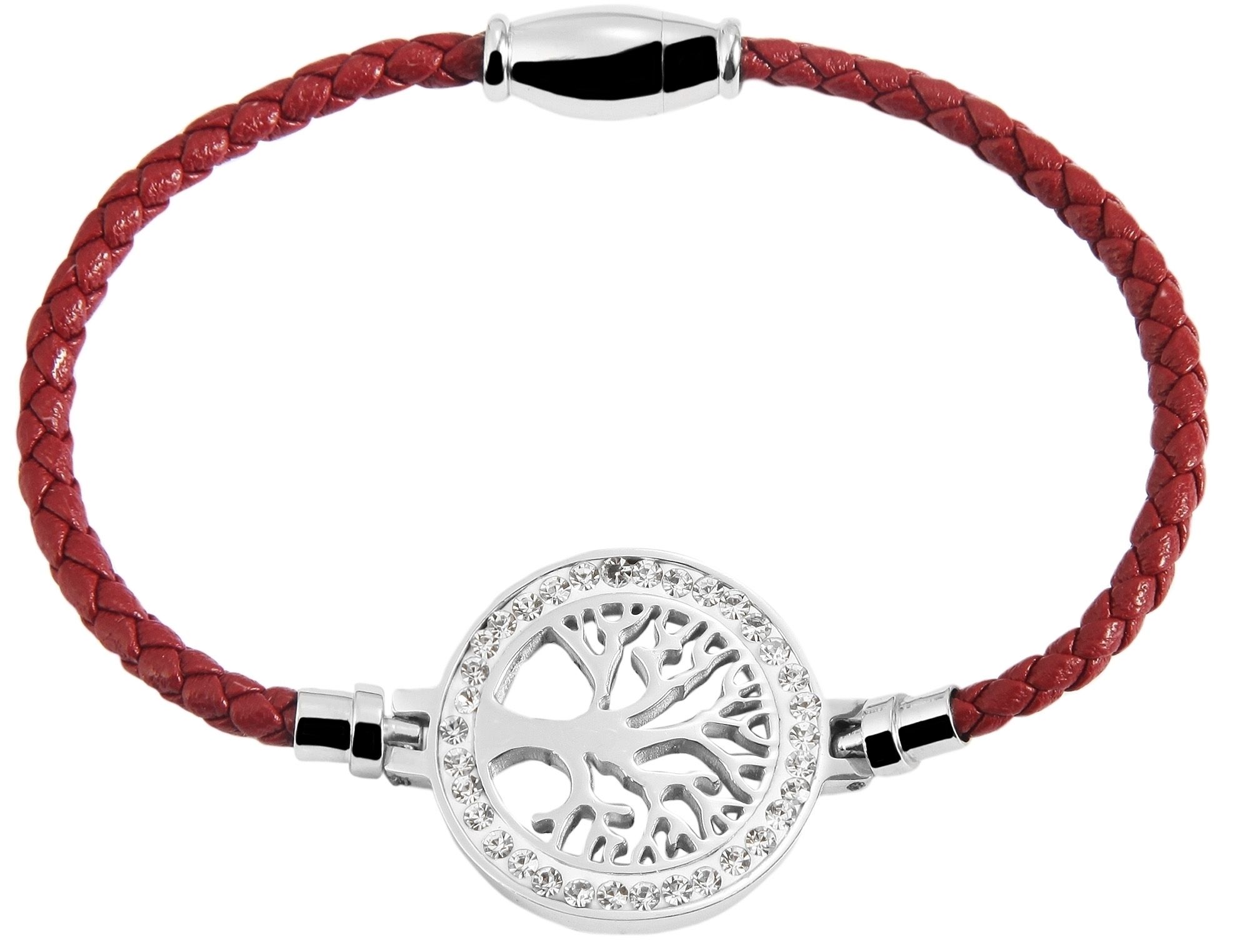 Produktinformationen "Akzent Armband aus Lederimitat, geflochten mit Edelstahlelement Lebensbaum, rot/silberfarben"