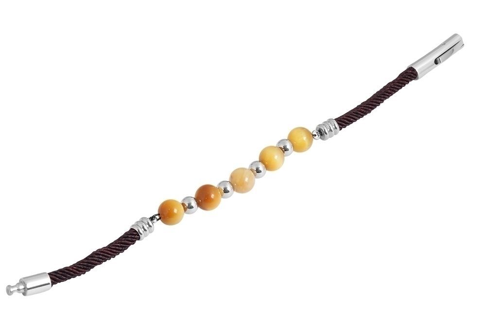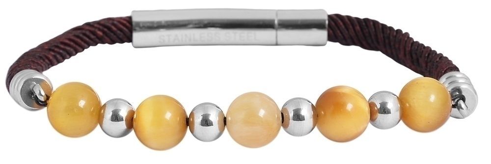 Produktinformationen "Akzent Armband aus braunem Textil mit gelben/silberfarbenen Edelstahl- und Kunststoffkugeln"