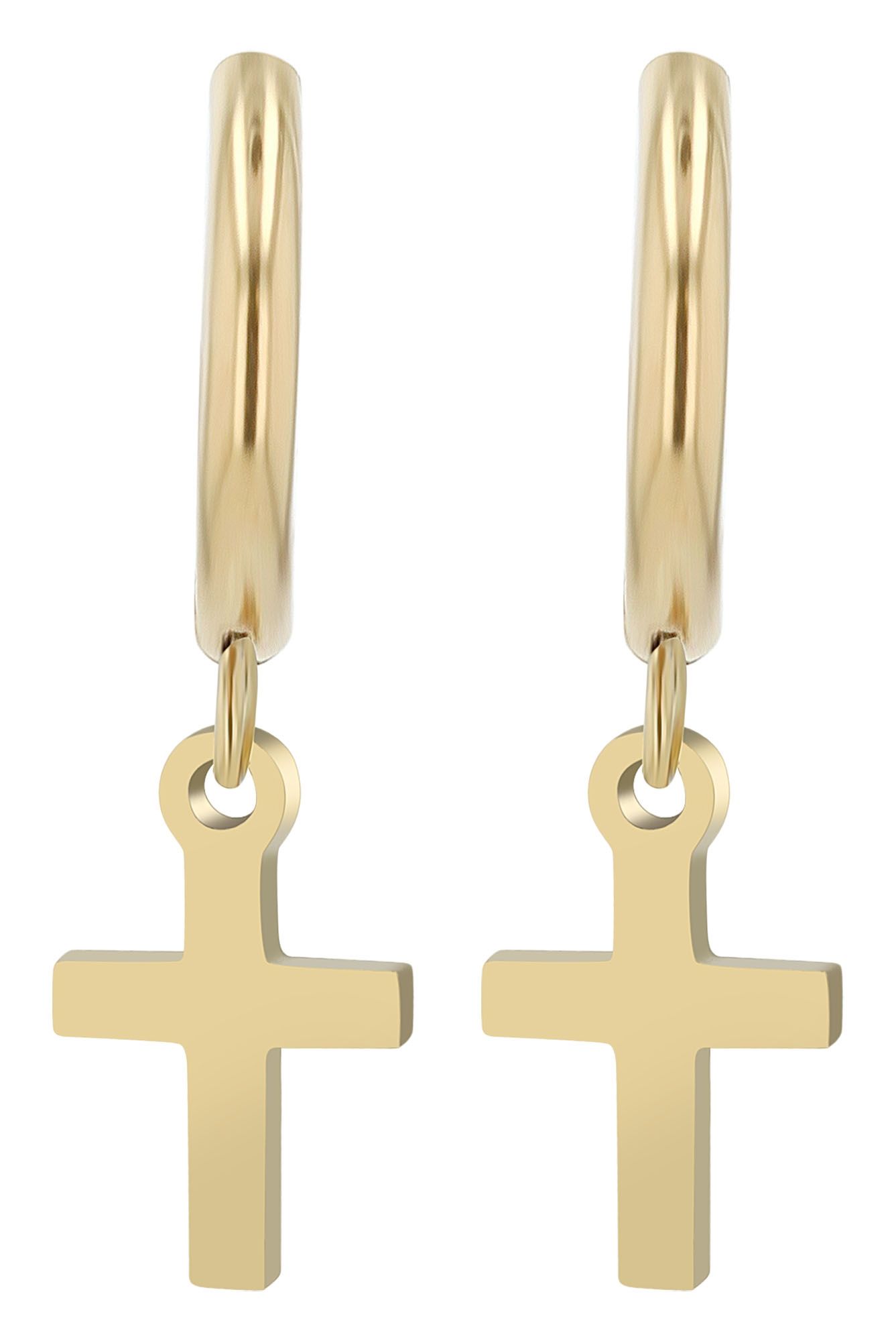 Produktinformationen "Akzent Creolen "Duncan" mit Kreuzanhänger, Edelstahl, goldfarben"