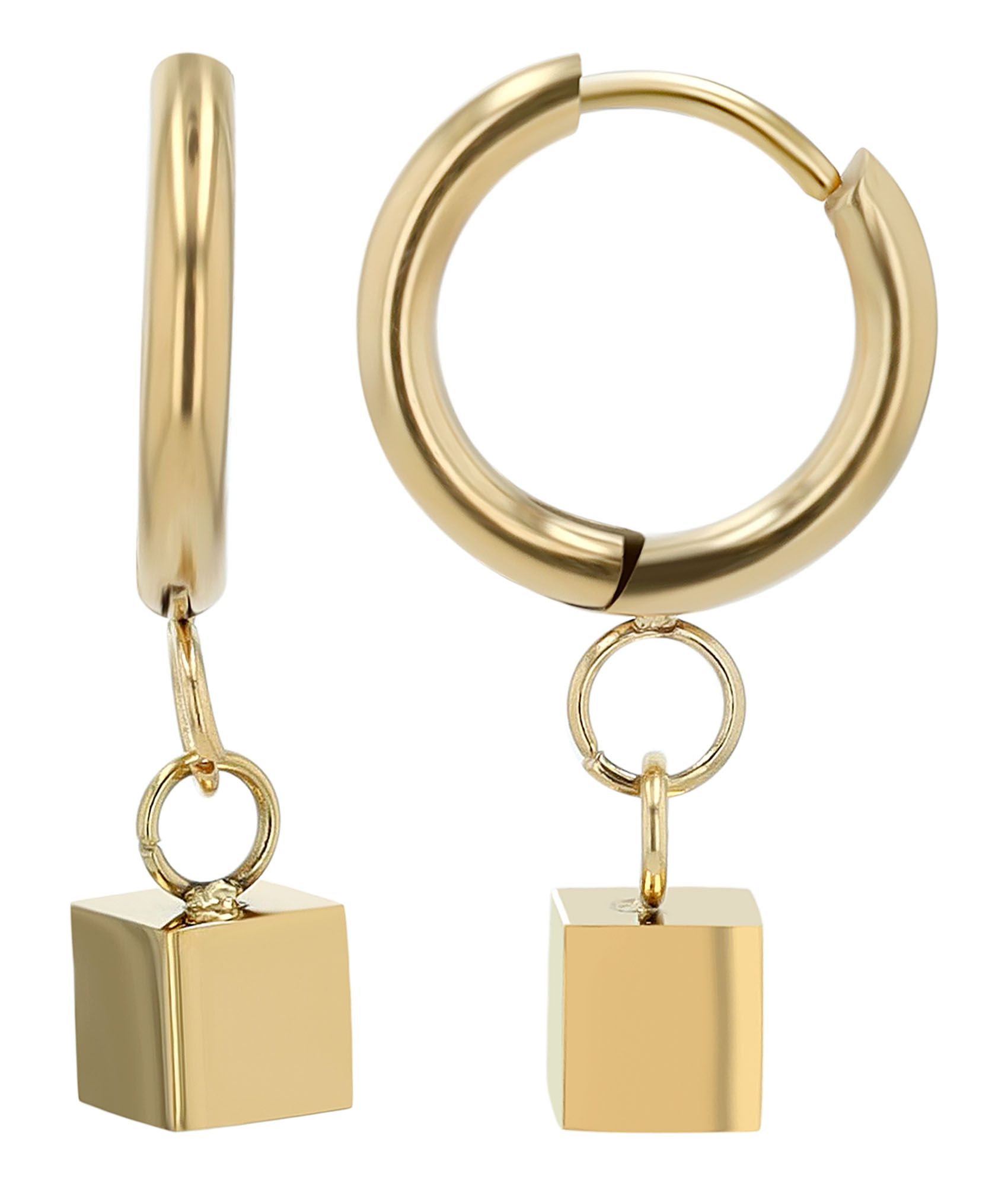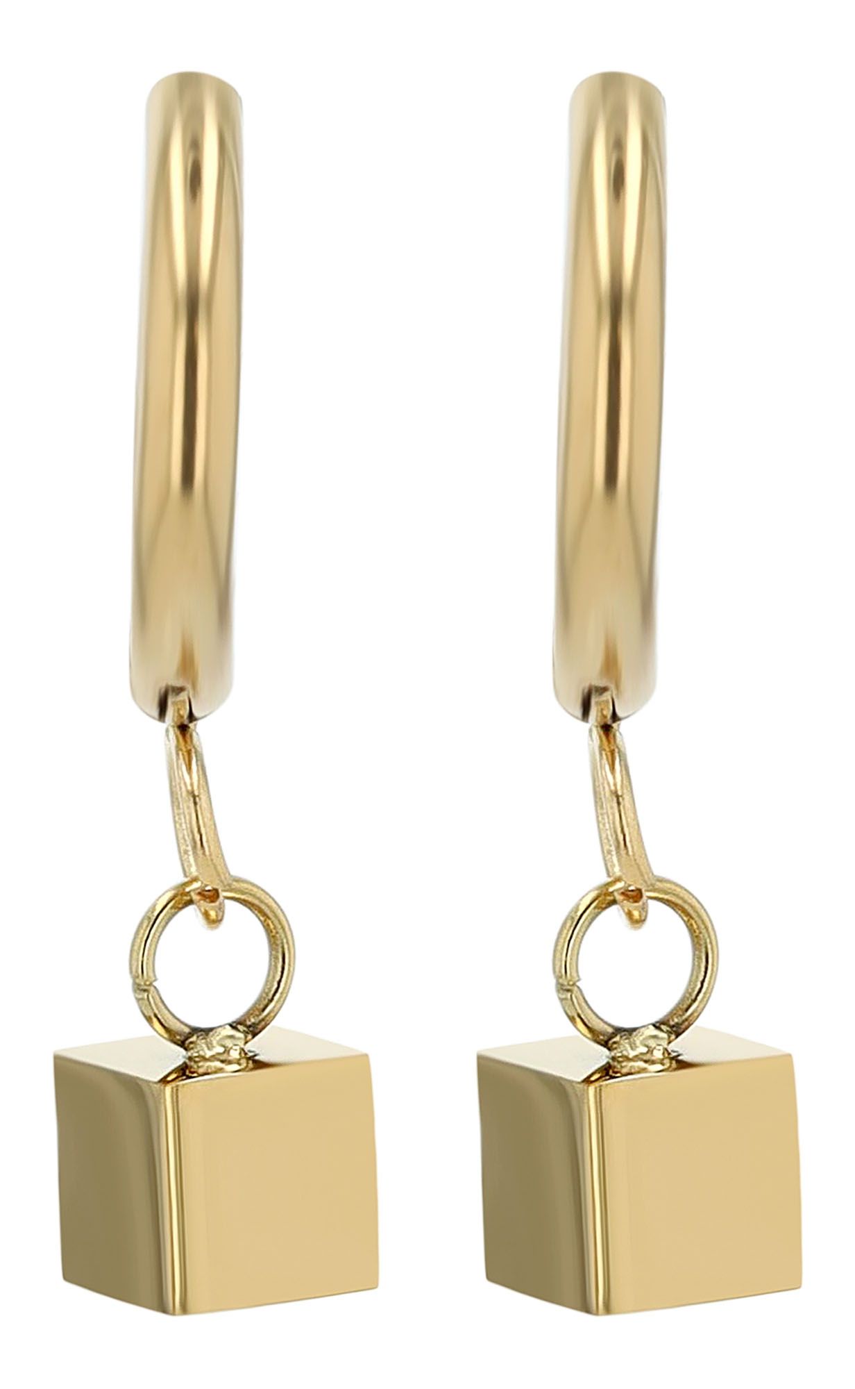 Produktinformationen "Akzent Creolen "Priya" mit eckigem Anhänger, Edelstahl, goldfarben"