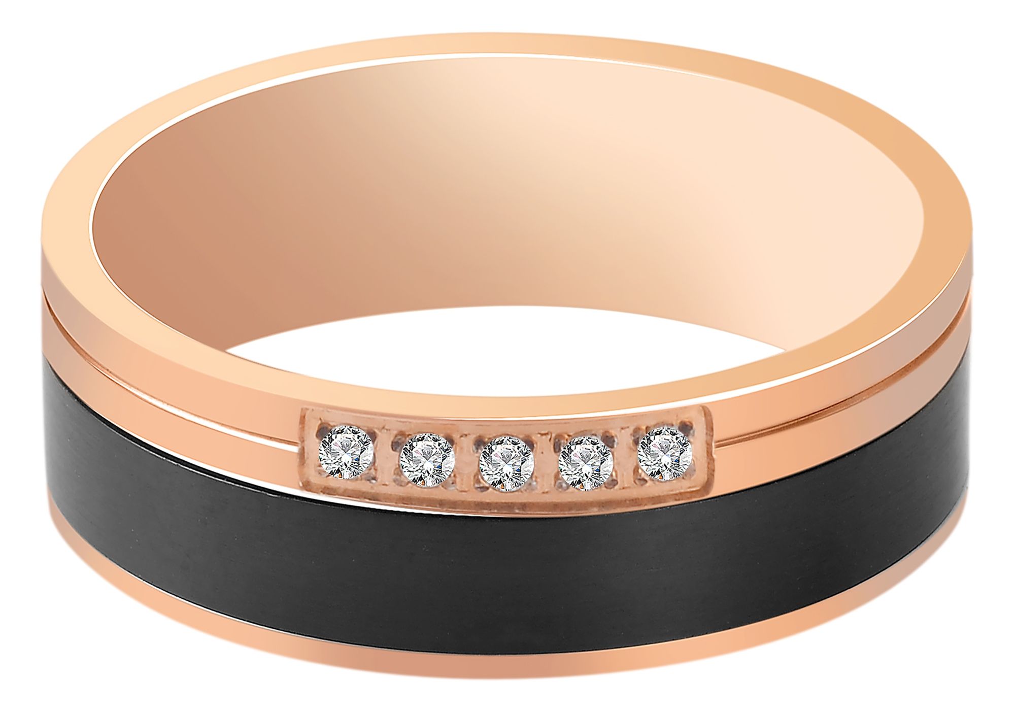 Produktinformationen "Akzent Damen-Partnerring, Edelstahl, Similibesatz, roségoldfarben/schwarz, Gr. 50"