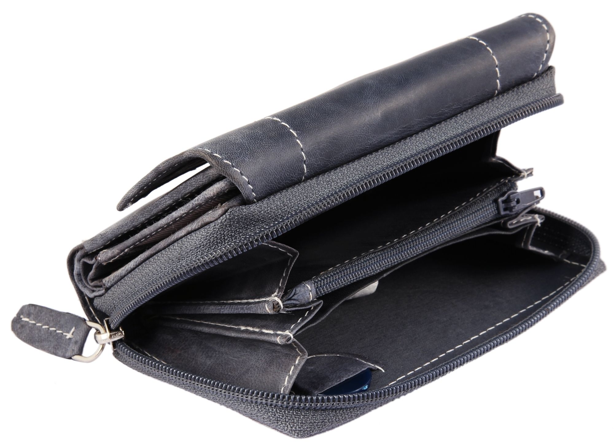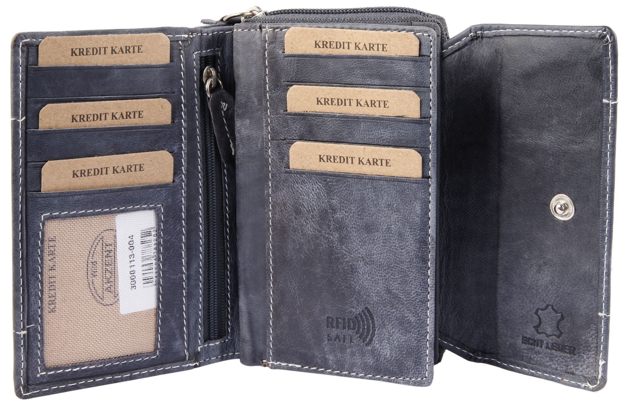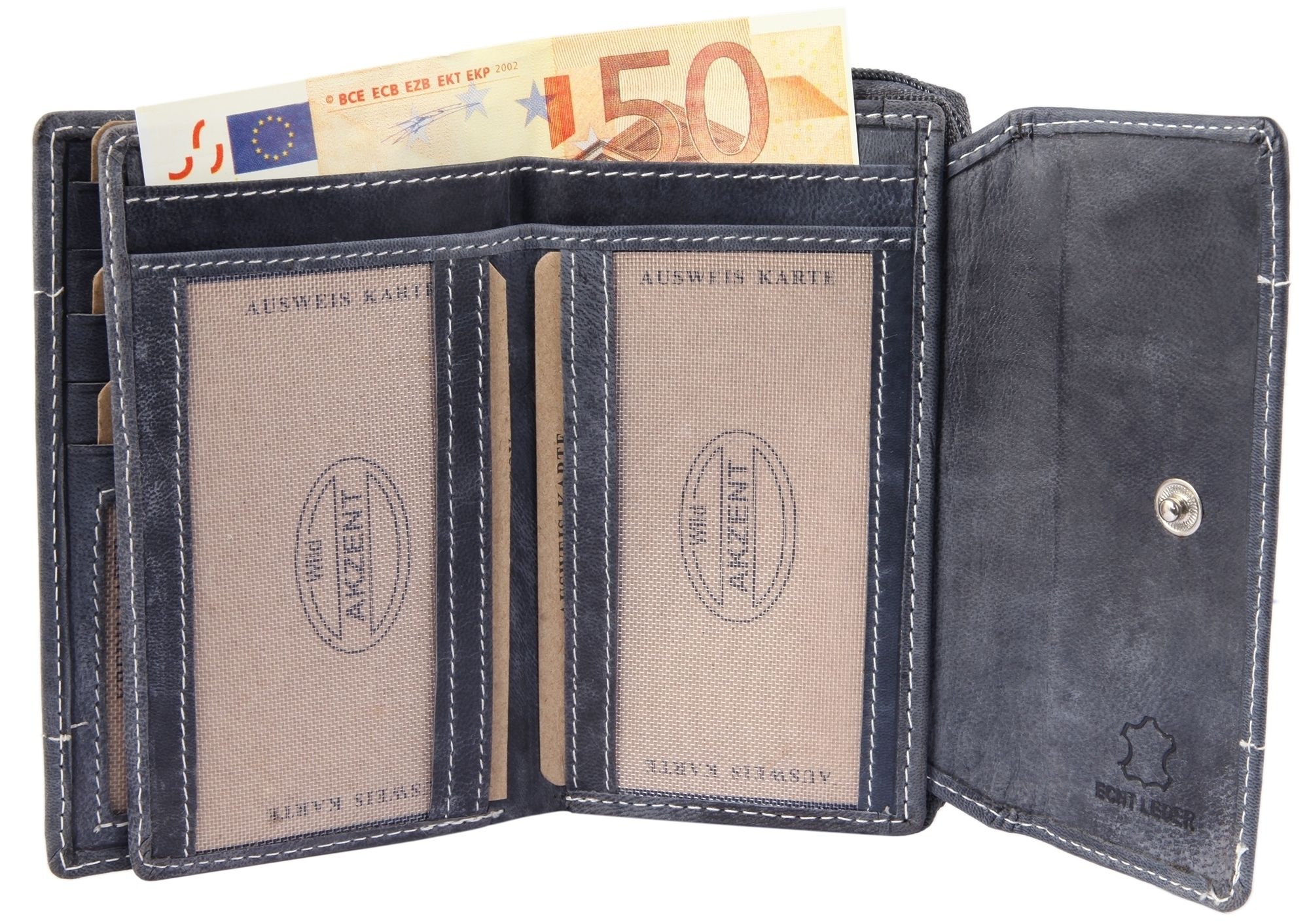 Produktinformationen "Akzent Damengeldbörse aus Echtleder, RFID-Schutz, dunkelblau"