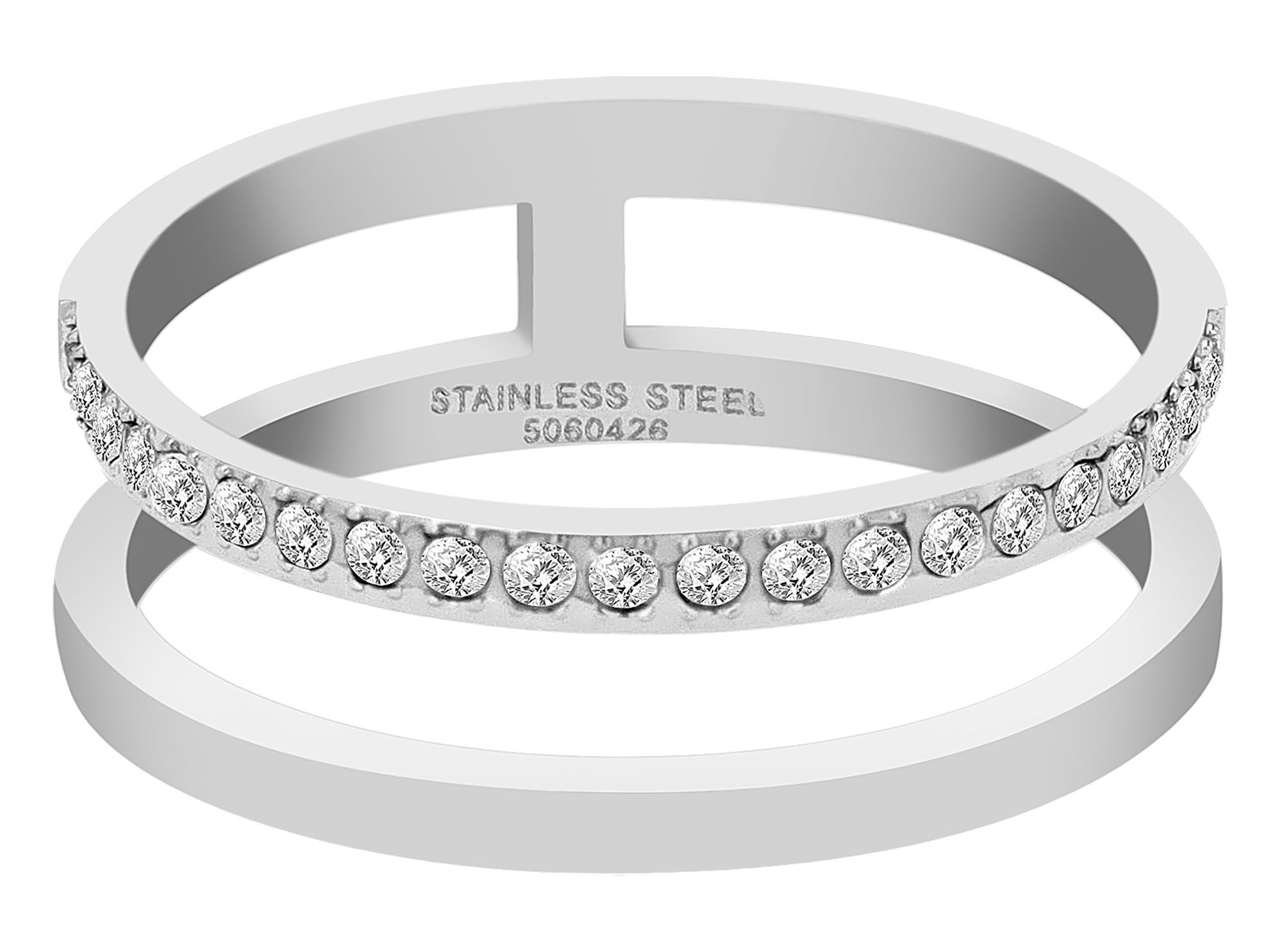 Produktinformationen "Akzent Damenring "Zenith" aus Edelstahl, 2er Ringschiene, silberfarben, Gr. 57"