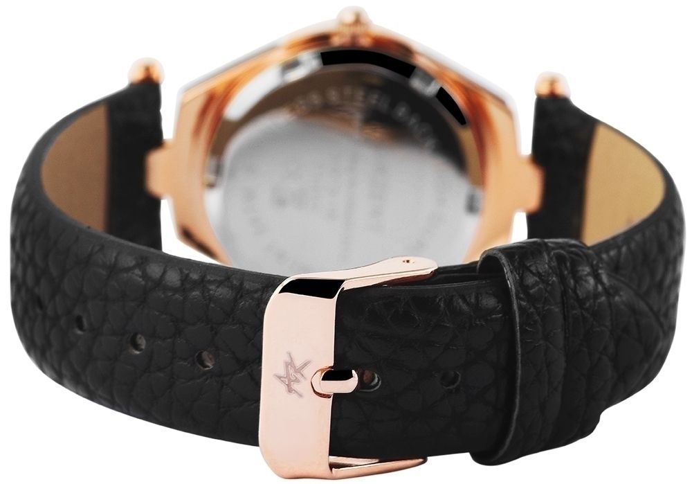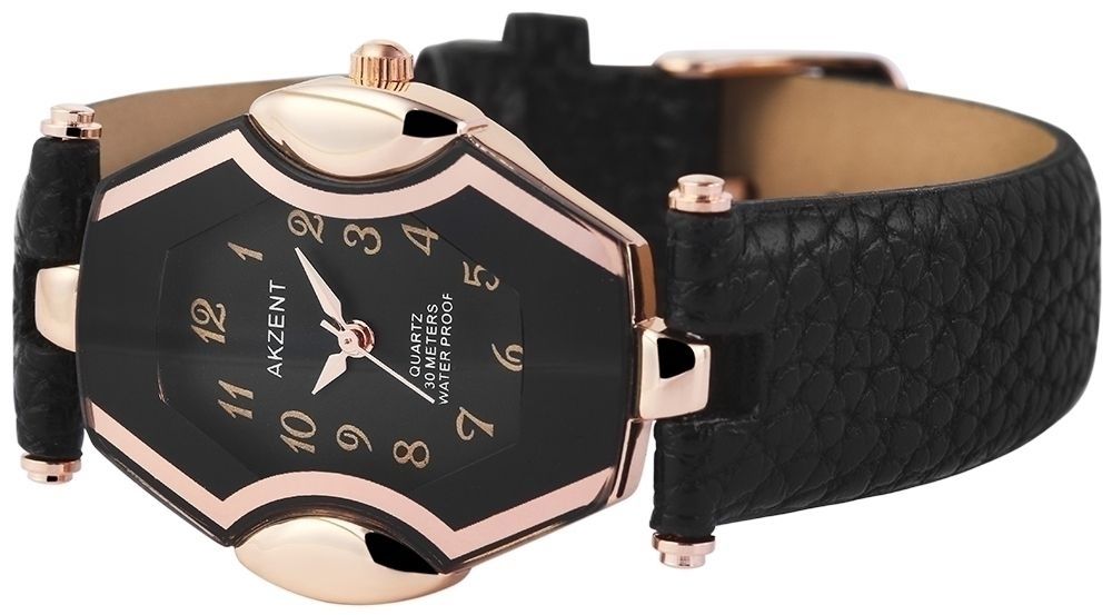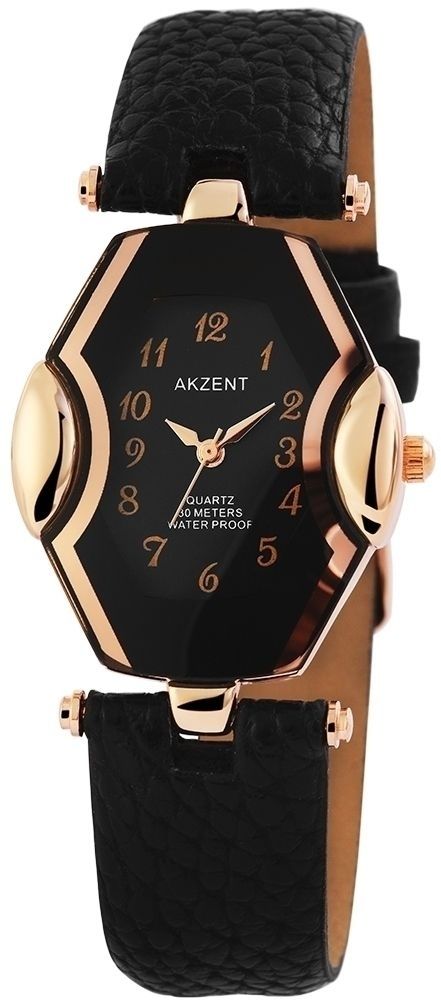 Die Analog Damenuhr der Marke Akzent verfügt über ein Hochwertiges Quarzwerk. Das Lederimitatband ist 18 mm breit und wird mit einer Dornschließe geöffnet. Die Gesamtlänge beträgt 22 cm. Das Metallgehäuse mit Mineralglas hat eine Abmessung von 30 x 34 mm und 9 mm Gehäusehöhe. Der Gehäusedeckel ist aus Edelstahl gefertigt. Die Uhr ist 3 ATM druckgeprüft.