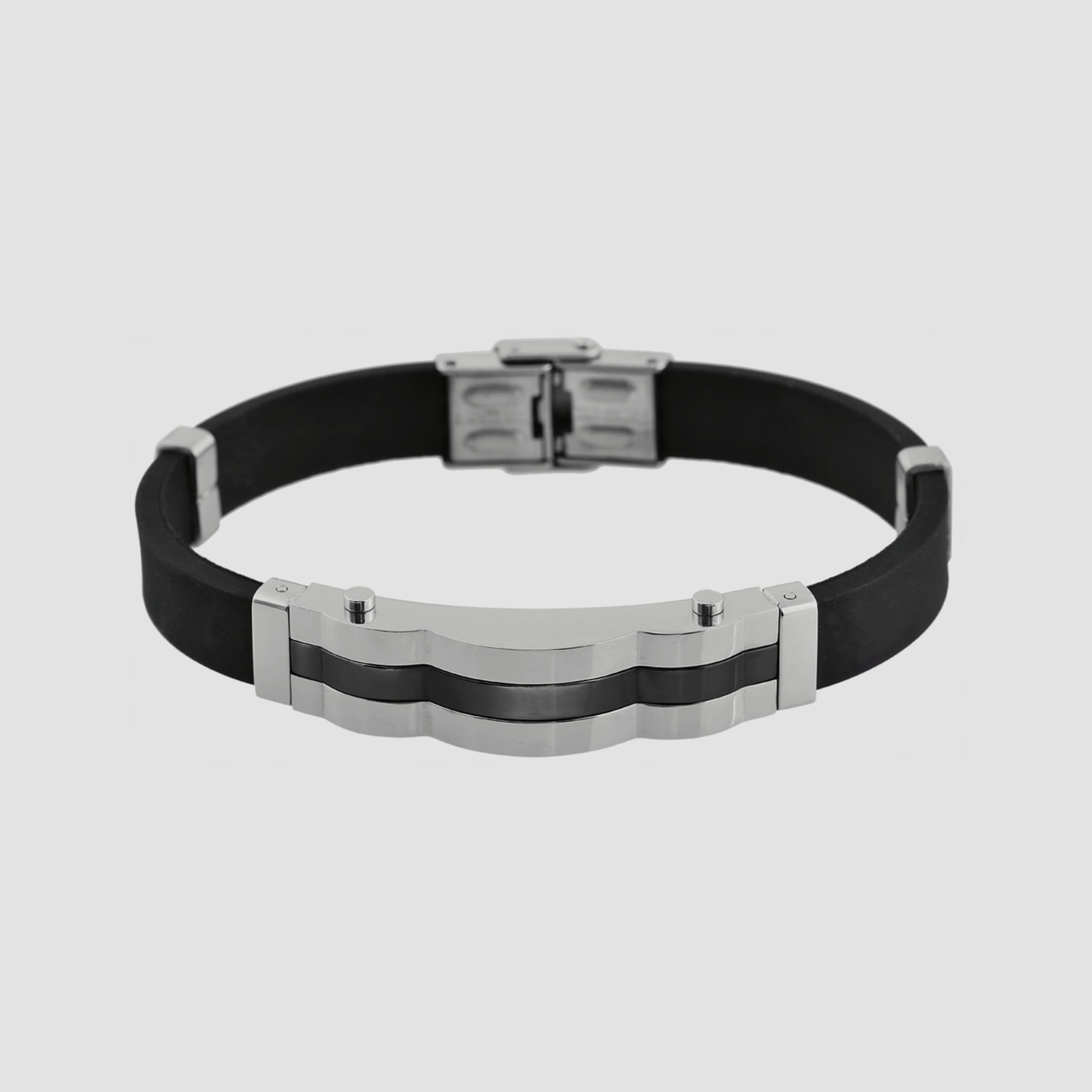 Produktinformationen "Akzent Das Schmuckarmband aus Kautschuk und Edelstahl in silberfarbig mit IP Black-Beschichtung"