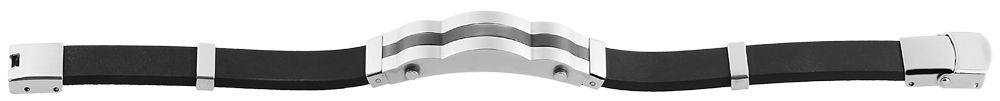 Das Schmuckarmband von Akzent wurde aus Kautschuk gefertigt. Als zweites Bandmaterial wird Edelstahl verwendet. Die Farbe des Armbandes ist silberfarbig und Schwarz. Veredelt wird das Kautschuk Armband mit einer gediegenen IP Black-Beschichtung. Die Beschaffenheit ist in Edelstahl glänzend gehalten. Das Armband ist 21 cm lang. Ohne Schließe beträgt die Gesamtlänge 21 cm. Die Breite beträgt 12 mm.