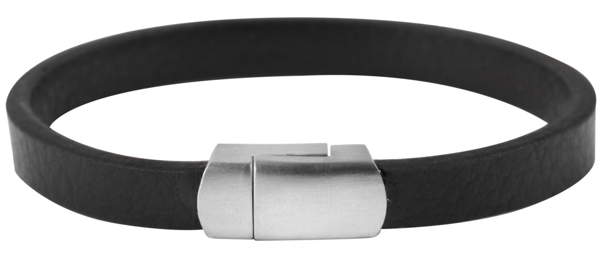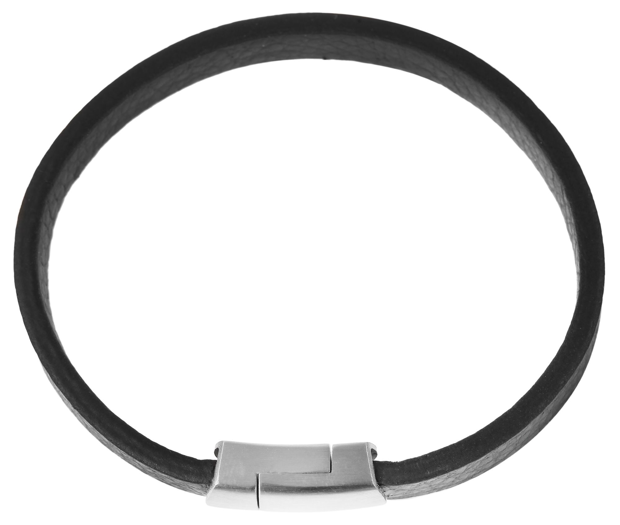 Produktinformationen "Akzent Echtlederarmband, Magnetverschluss, schwarz/silberfarben"