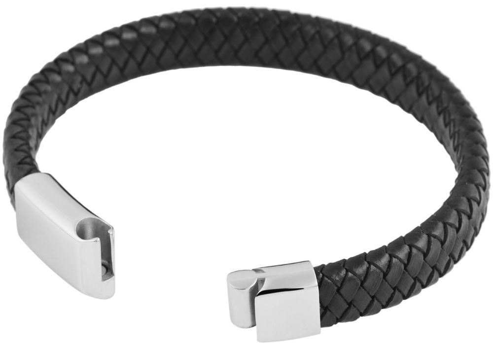 Produktinformationen "Akzent Echtlederarmband, geflochten, Edelstahlmagnetschließe, schwarz"