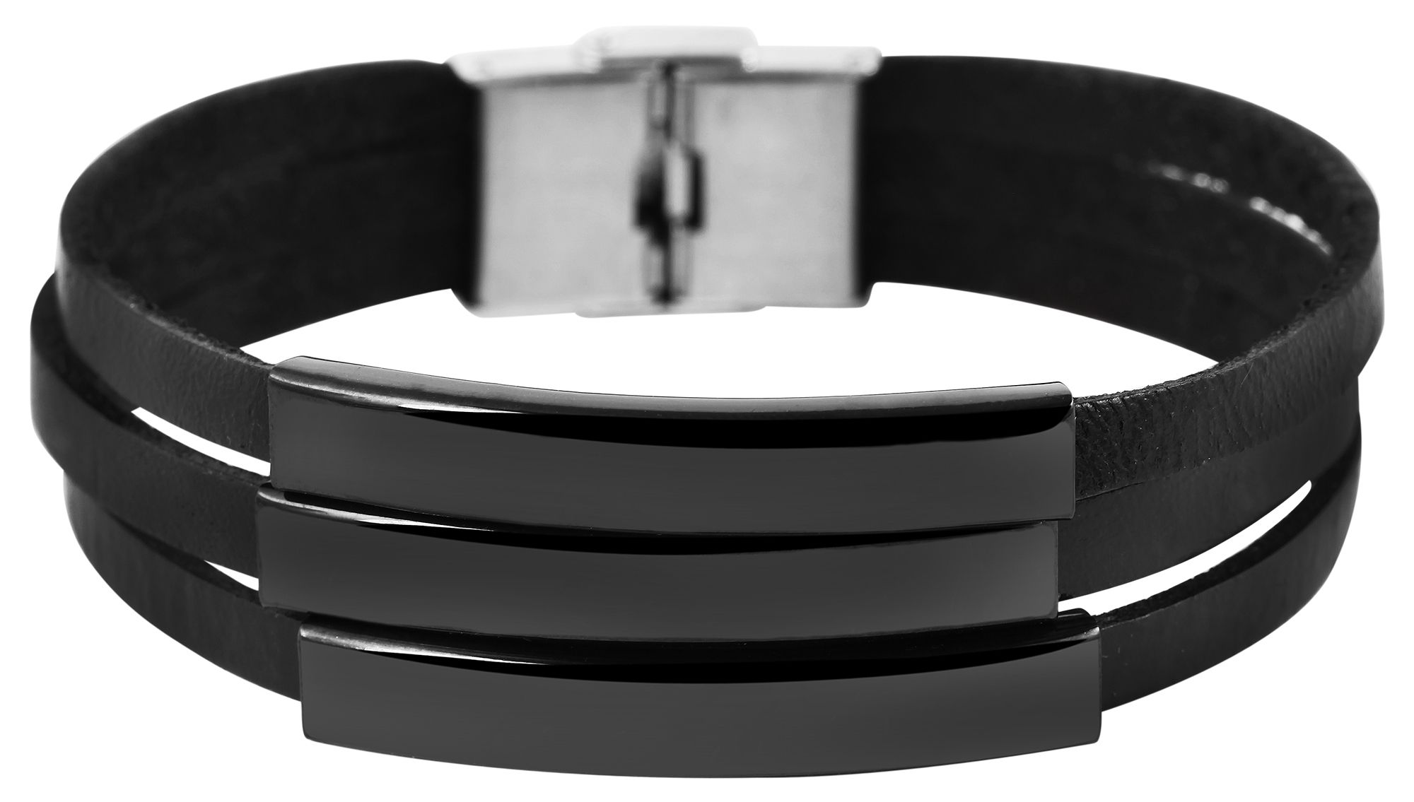 Produktinformationen "Akzent Echtlederarmband mit Edelstahlelementen, schwarz"
