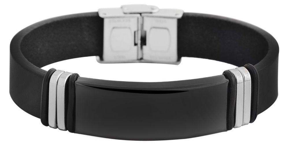 Produktinformationen "Akzent Echtlederarmband mit Edelstahlgravurplatte, schwarz/schwarz"