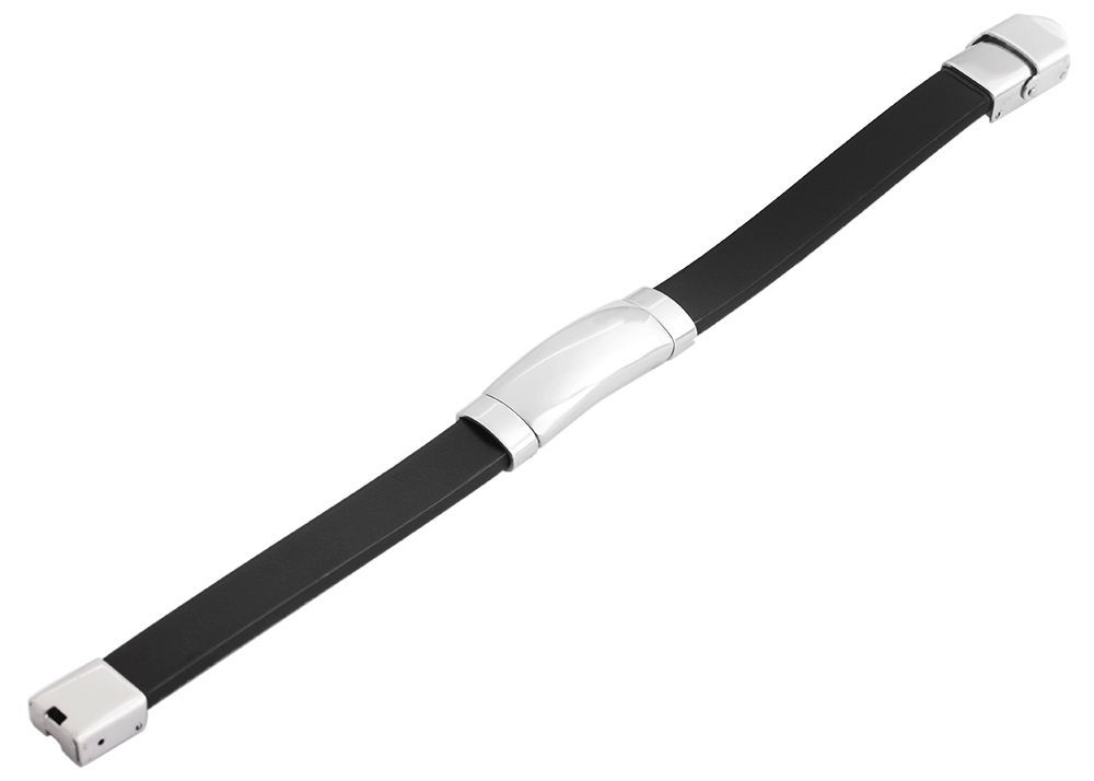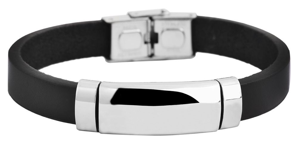Produktinformationen "Akzent Echtlederarmband mit Edelstahlgravurplatte, schwarz/silberfarben"