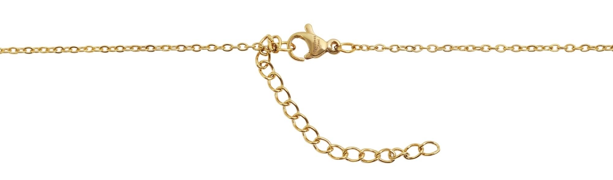 Die goldfarbene Damenkette der Marke Akzent ist IPG-beschichtet und aus Edelstahl gefertigt. Die Maße der Kette ergeben sich aus einer Länge von 43 cm, einer Breite von 1 mm und einer Stärke von 1 mm. Zusätzlich ist eine 5 cm lange Verlängerungskette an der Kette angebracht, die es ermöglicht, die Länge um bis zu 5 cm zu variieren und dieses besondere Schmuckstück jedem Outfit anpassen zu können. Zudem verfügt die Kette über einen Edelstahl-Anhänger, der eine Länge von 6 mm, eine Breite von 7 mm und eine Stärke von 2 mm hat. Öffnen und schließen lässt sich die Kette mit einem Karabinerverschluss, der ebenfalls aus Edelstahl gefertigt ist.