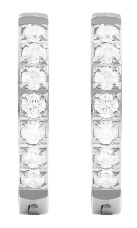 Die Akzent Klapp-Creolen wurden aus Edelstahl gefertigt und sind zusätzlich mit 7 funkelnden Similisteinen je Creole besetzt. Die Farbe ist silberfarbig gehalten. Die Beschaffenheit des Materials ist matt. Durch den Klappverschluss lassen sich die Ohrringe leichthändig öffnen und schließen. Der Artikel hat folgende Abmessungen: Durchmesser: 9 mm, Breite 2 mm und Stärke 2 mm.