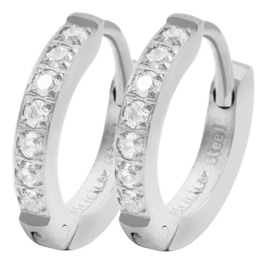 Produktinformationen "Akzent Edelstahl Klapp-Creolen, Simili besetzt, silberfarbig, matt"