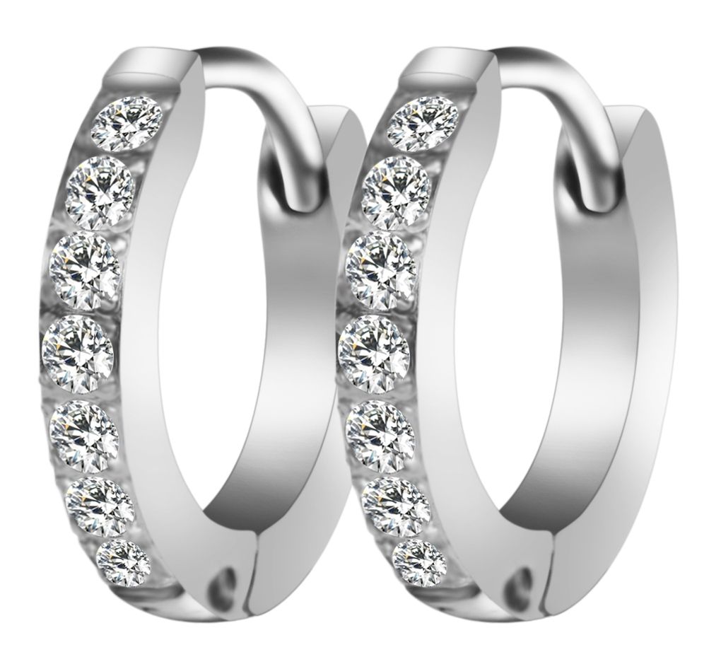 Produktinformationen "Akzent Edelstahl Klapp-Creolen mit Similibesatz in silberfarbig"