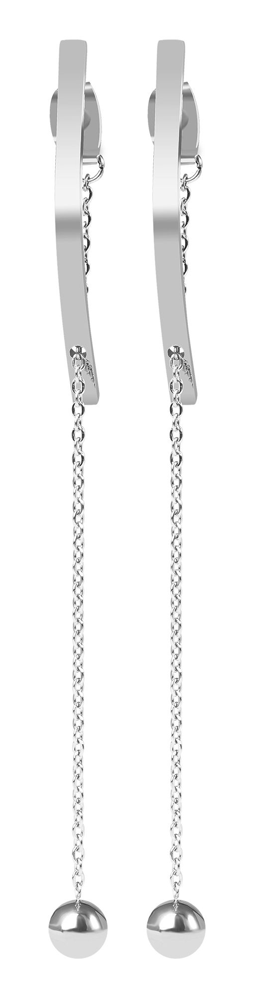 Akzent Ohrring aus Edelstahl in silberfarbig. Der Verschluss ist ein Steckverschluss. Die Beschaffenheit zeigt sich in Edelstahl glänzend. Der Artikel hat folgende Abmessungen: Länge: 7,5 cm, Breite: 3 cm und Stärke: 0,2 cm.