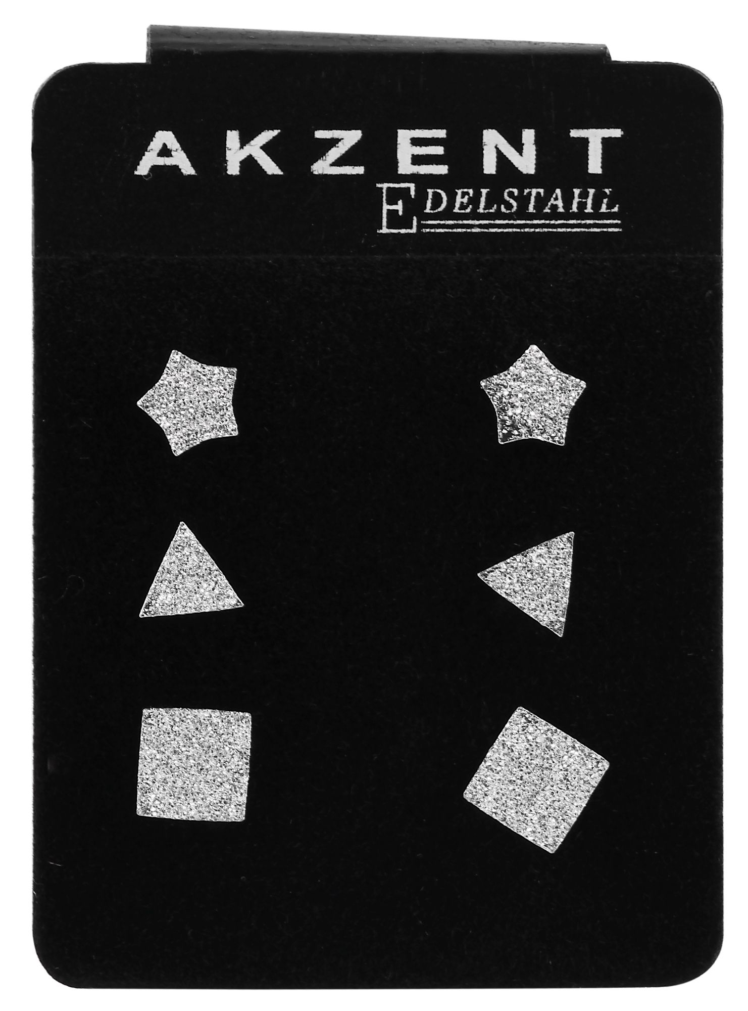 Produktinformationen "Akzent Edelstahl Ohrstecker 3er Set, verschiedene Motive, silberfarbig"