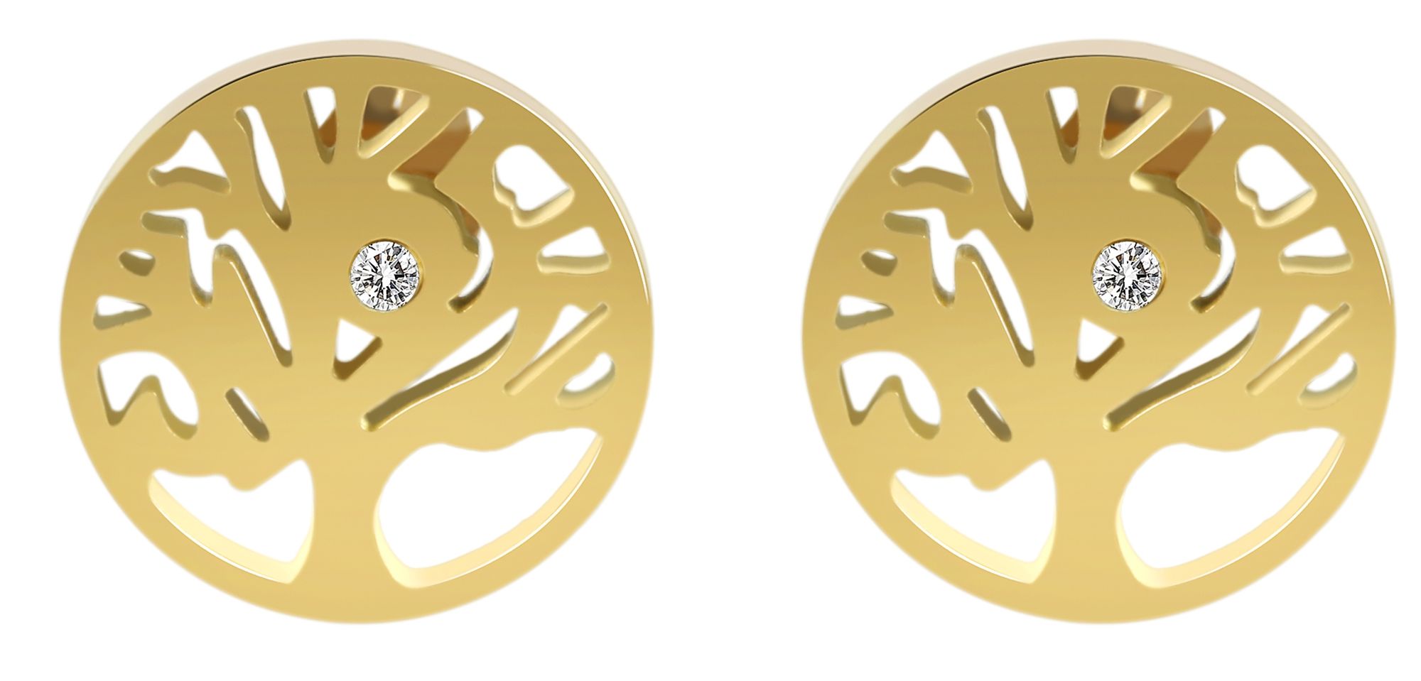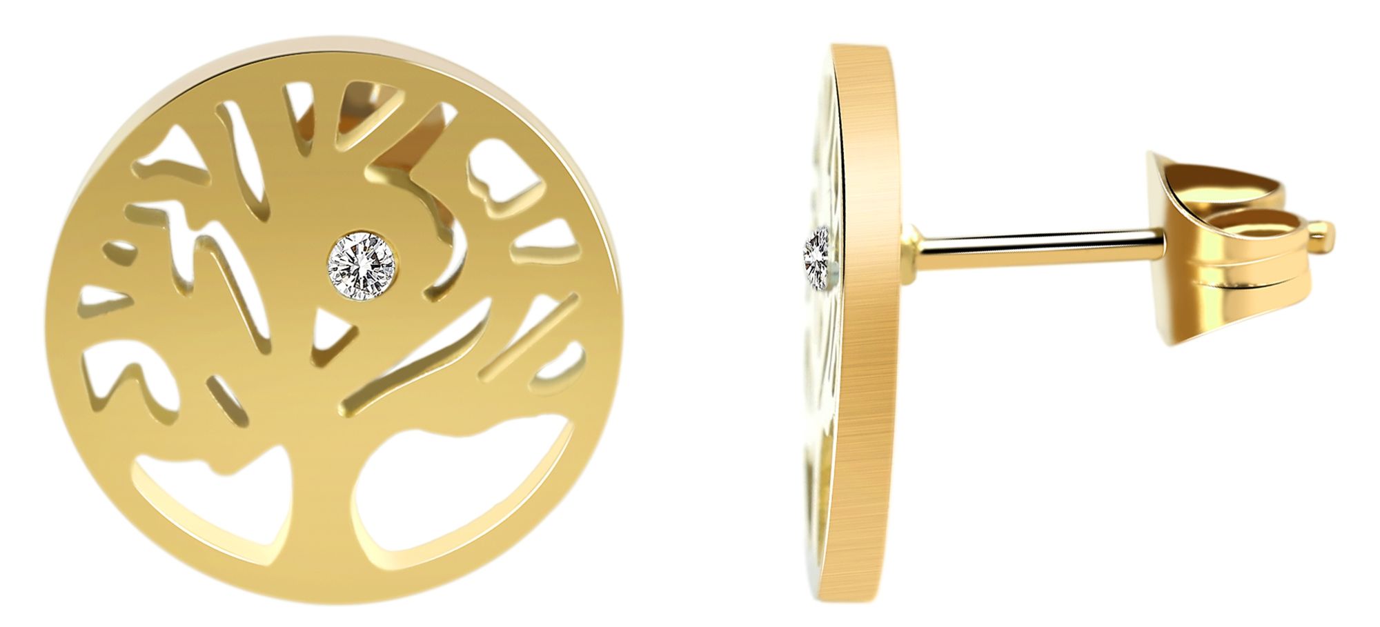 Produktinformationen "Akzent Edelstahl Ohrstecker, Lebensbaum mit Similibesatz, Ionenplattiert, goldfarben"