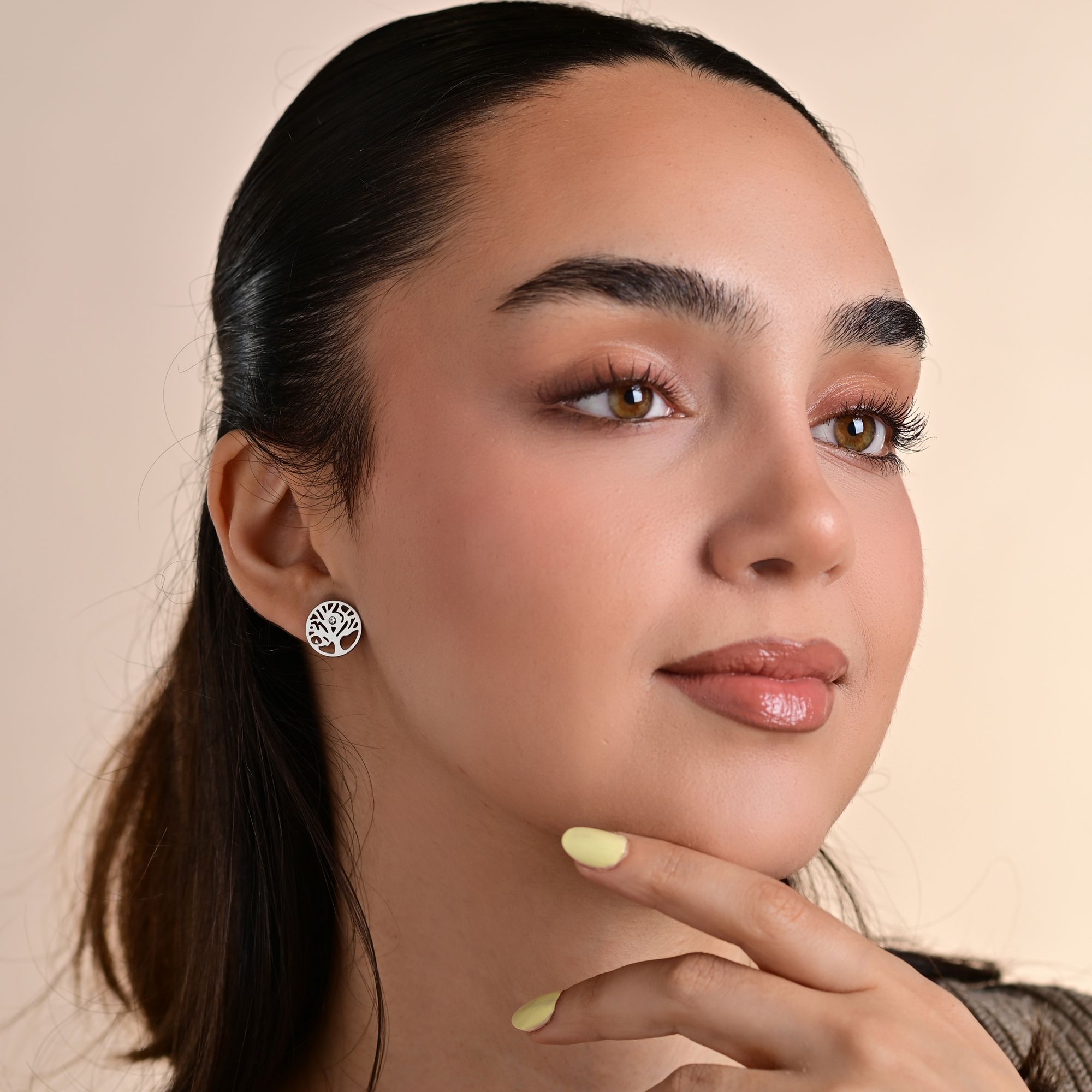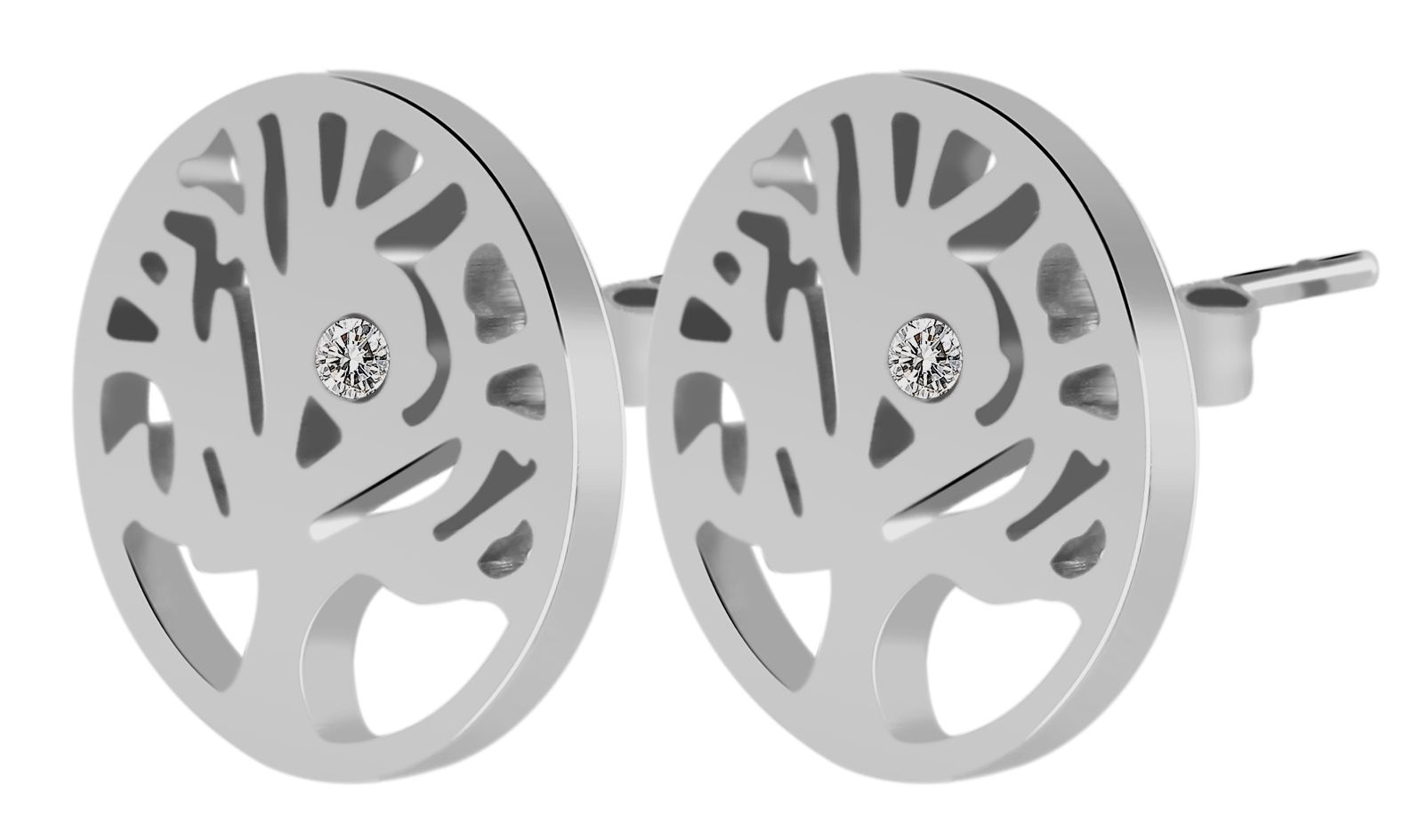 Produktinformationen "Akzent Edelstahl Ohrstecker, Lebensbaum mit Similibesatz, silberfarben"