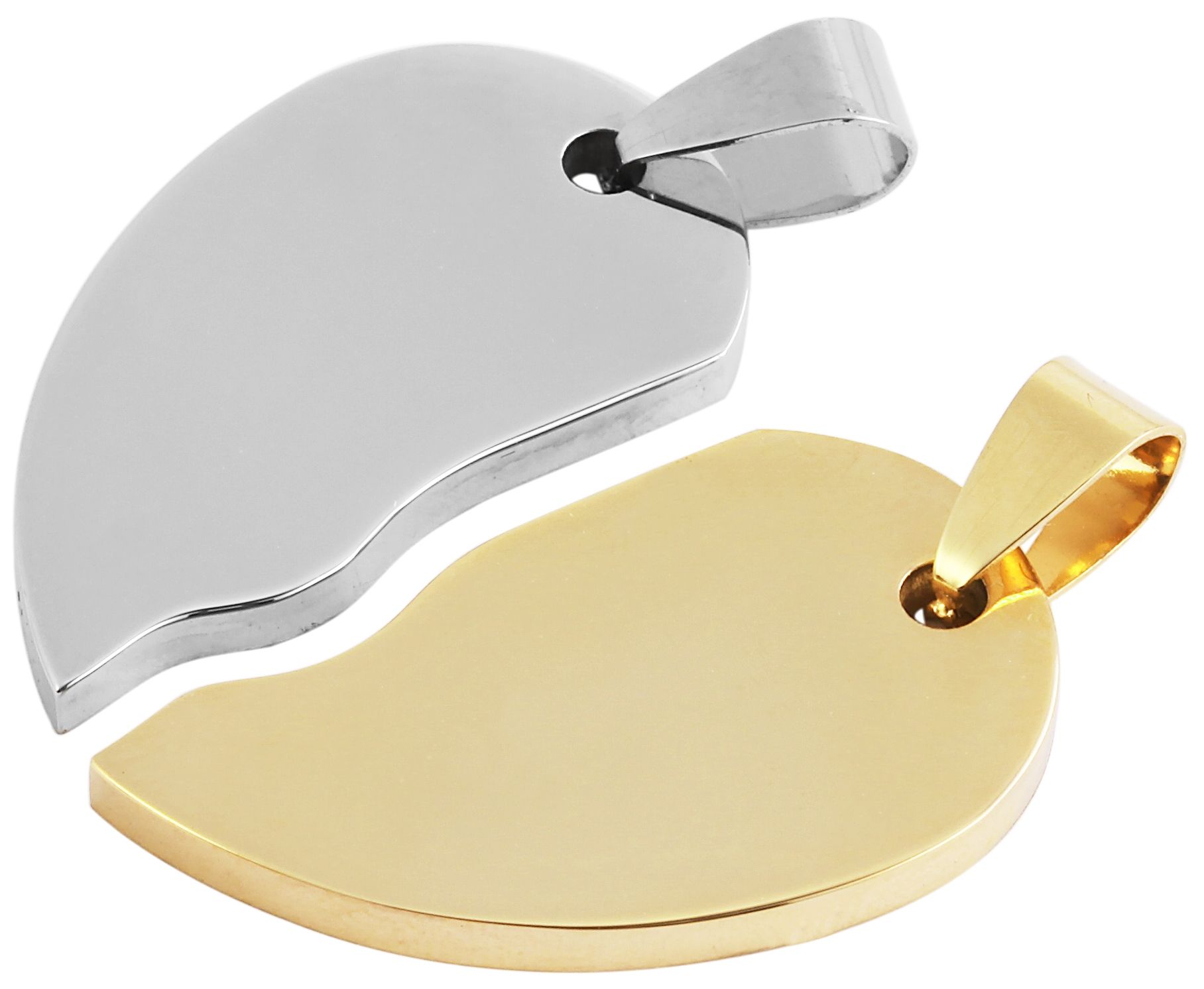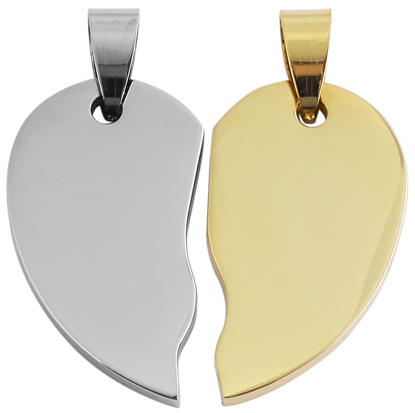 Produktinformationen "Akzent Edelstahl Partneranhänger, Gravur, herzförmig, silberfarben, goldfarben"