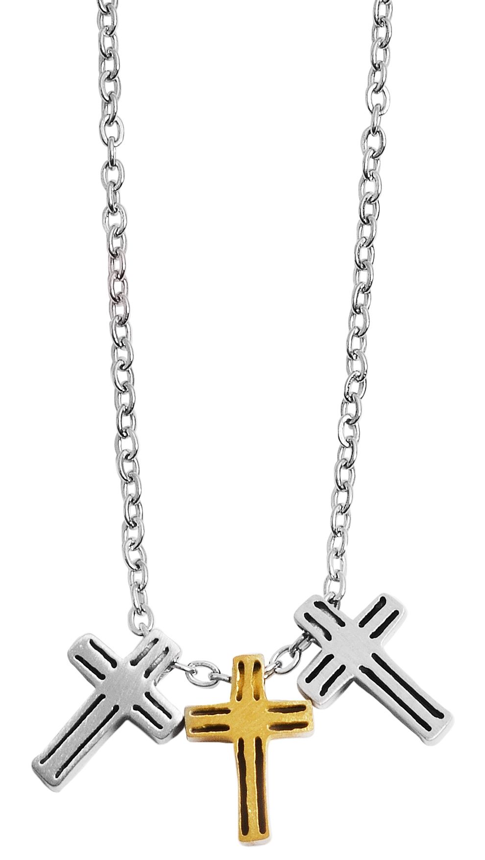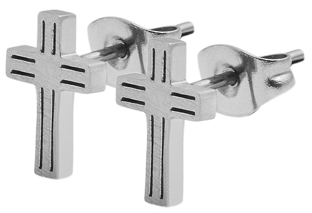 Produktinformationen "Akzent Edelstahl Schmuckset Kette + Ohrstecker, Kreuz, matt, silber- & goldfarbig"