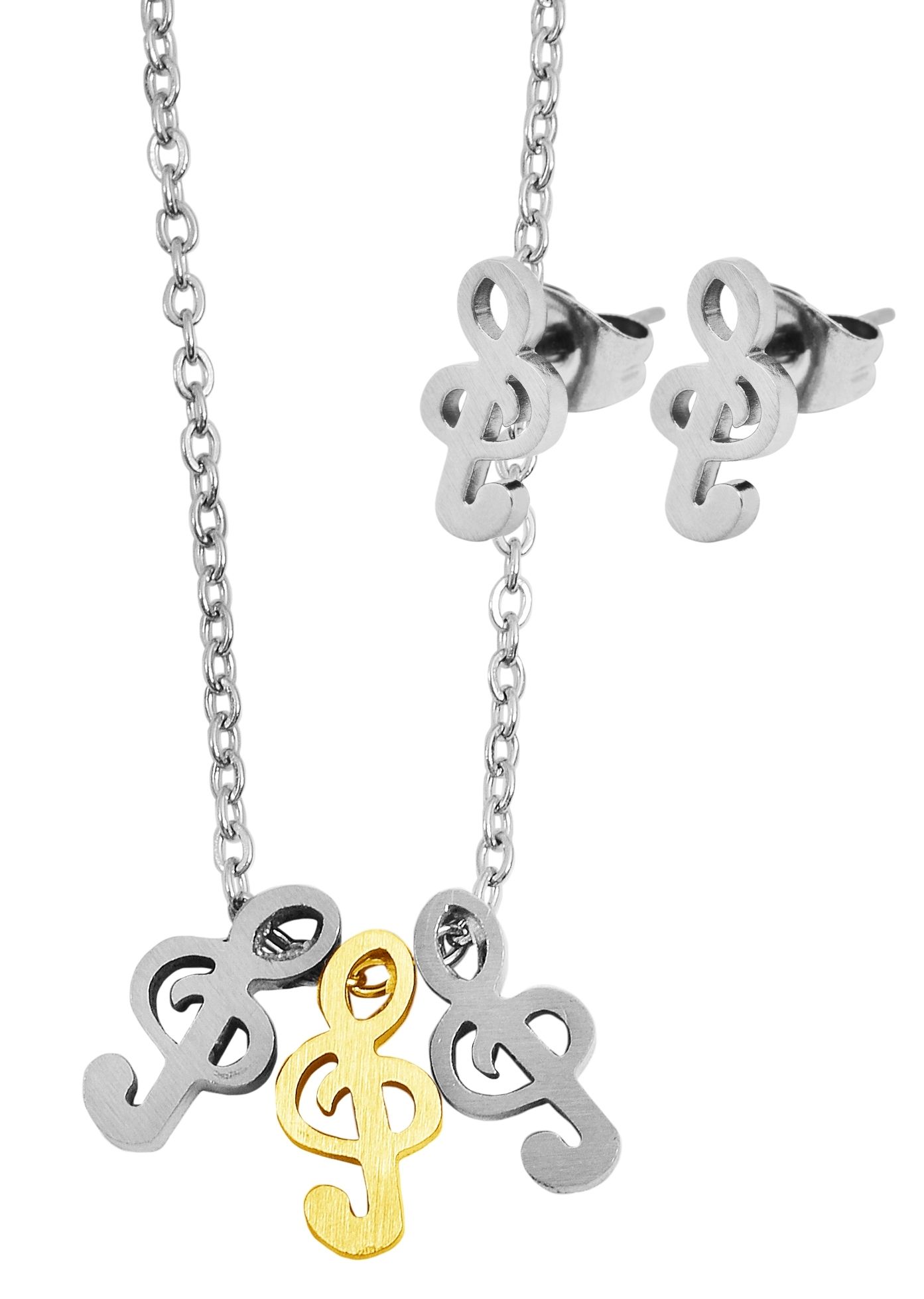 Produktinformationen "Akzent Edelstahl Schmuckset, Kette + Ohrstecker, Notenschlüssel, silber-& goldfarbig"