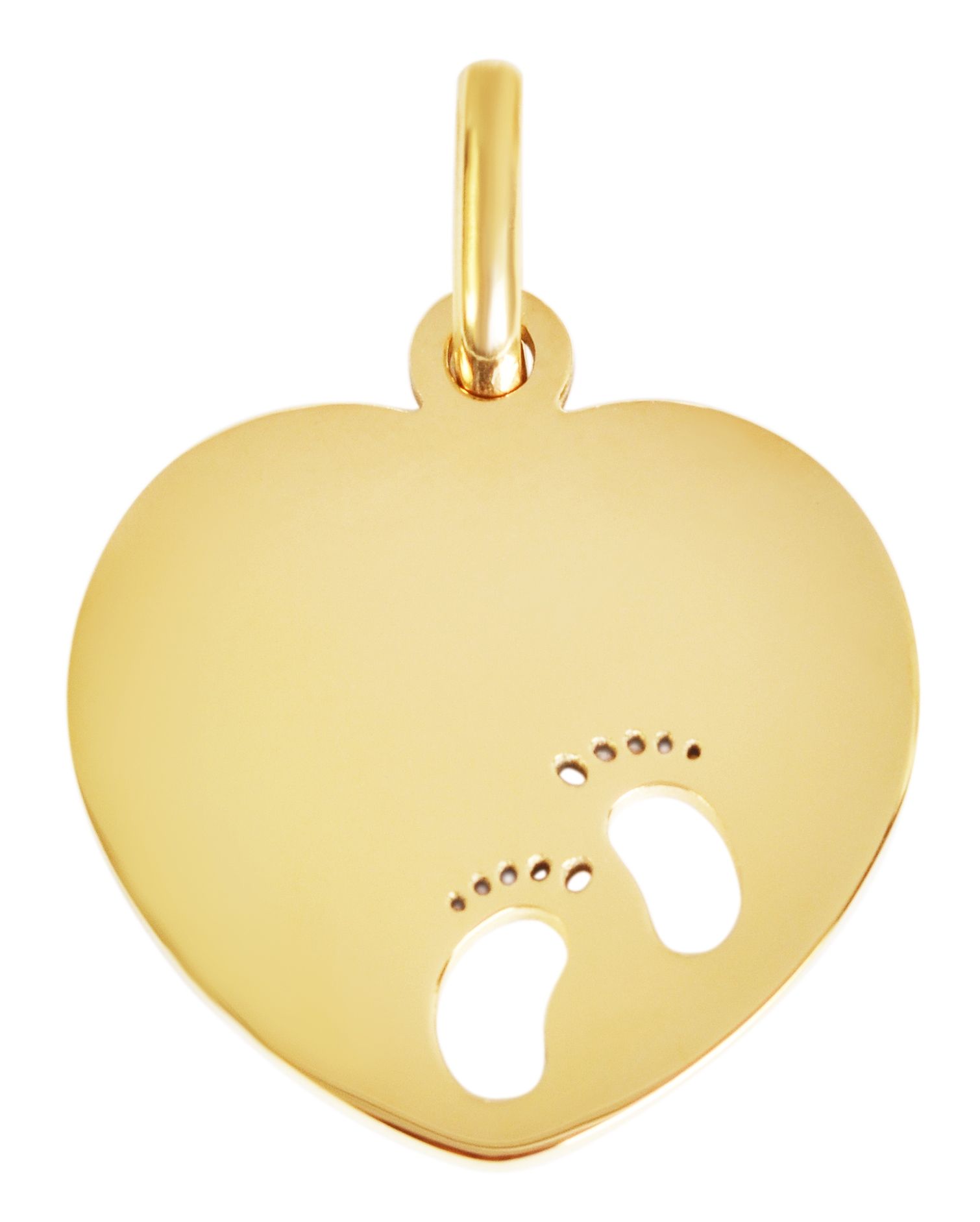 Produktinformationen "Akzent Edelstahlanhänger, Gravurplatte, Herz, Babyfüße, goldfarben"