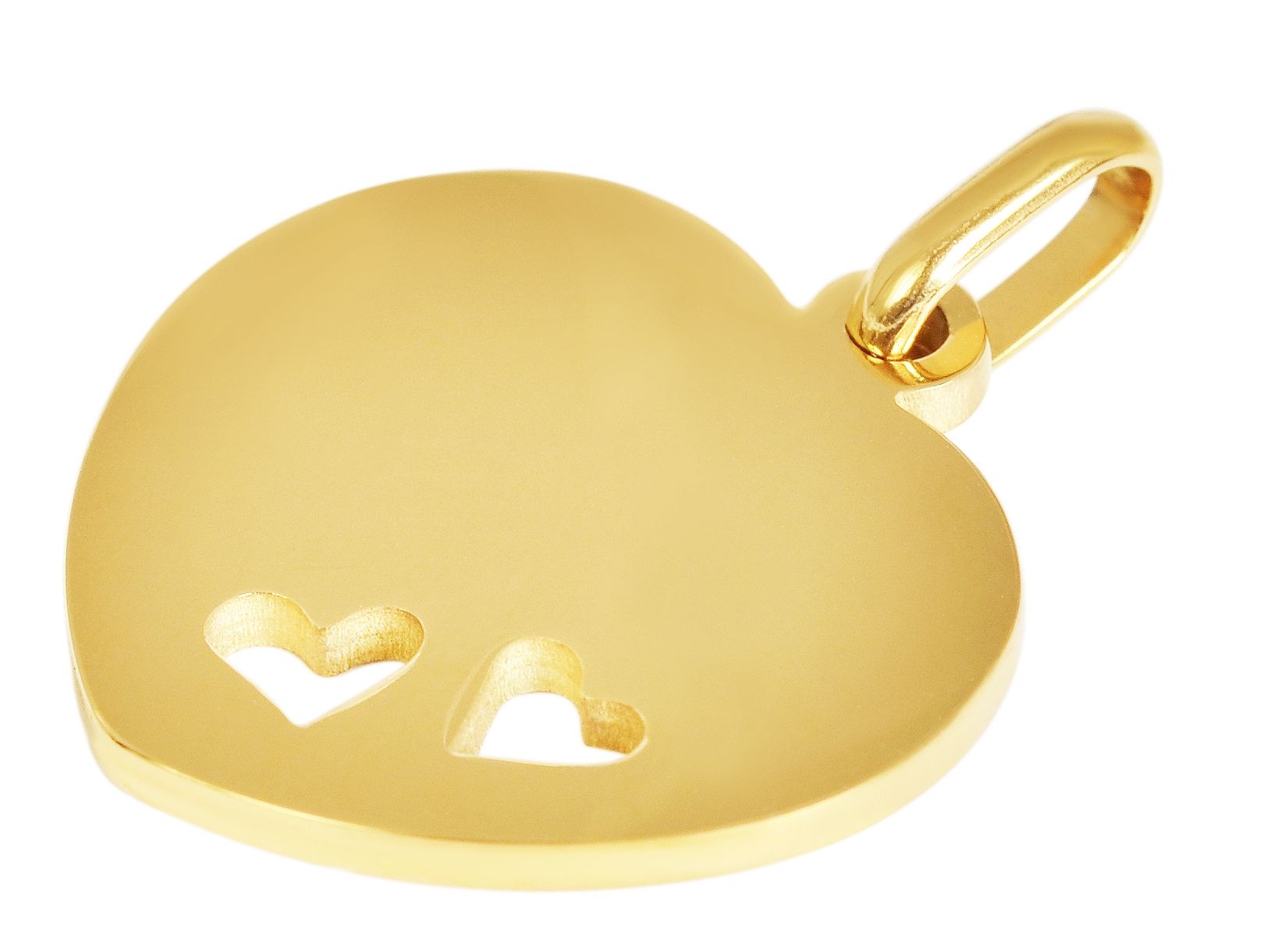 Der goldfarbene Gravuranhänger der Marke Akzent ist aus Edelstahl gefertigt und hat die Form eines Herzens. In das Herz wurden seitlich zwei kleine Fräsungen verarbeitet, die auch die Form eines Herzens haben. Die restliche Fläche des Anhängers kann sowohl auf der Vorder- als auch auf der Rückseite mit Gravuren aller Art versehen werden. Die Oberfläche der Gravurplatte ist hochglanzpoliert. Dank der ovalen Öse lässt sich der Anhänger beliebig an verschiedenen Ketten anbringen. Die Maße ergeben sich aus einer Länge von 26 mm, einer Breite von 25 mm und einer Materialstärke von 2 mm. Durch das robuste Material und die hochwertige Verarbeitung verspricht der Schmuckanhänger eine lange Lebensdauer. Zudem eignet er sich perfekt als personalisiertes Geschenk für besonderer Erinnerungen oder Personen.