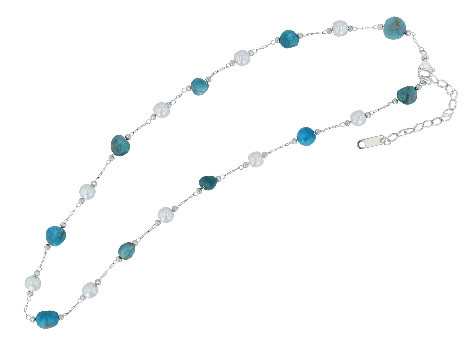 Produktinformationen "Akzent Edelstahlkette "Derya" mit Süßwasserperlen und blauen Natursteinen"