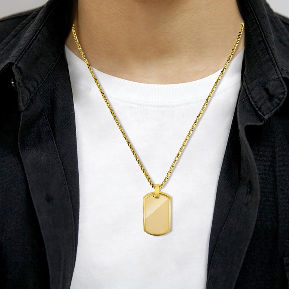 Produktinformationen "Akzent Edelstahlkette mit gravurfähigen Anhänger, poliert, goldfarben"