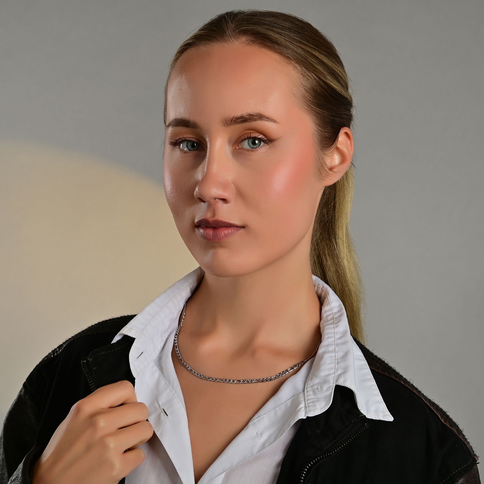 Hergestellt aus hochwertigem Edelstahl, ist diese Figarokette robust, langlebig und resistent gegen Kratzer und Verfärbungen. Mit einer Länge von 50 cm, einer Breite von 4 mm und einer Kettenstärke von 1 mm hat sie die perfekte Größe um zu jeder Gelegenheit getragen werden zu können. Die Figarokette ist bekannt für ihre einzigartige und elegante Struktur, die sich durch eine Mischung aus flachen und runden Gliedern auszeichnet. Der Karabinerverschluss bietet eine sichere und bequeme Passform, damit Sie sich keine Gedanken über ein eigenständiges Öffnen der Kette machen müssen.