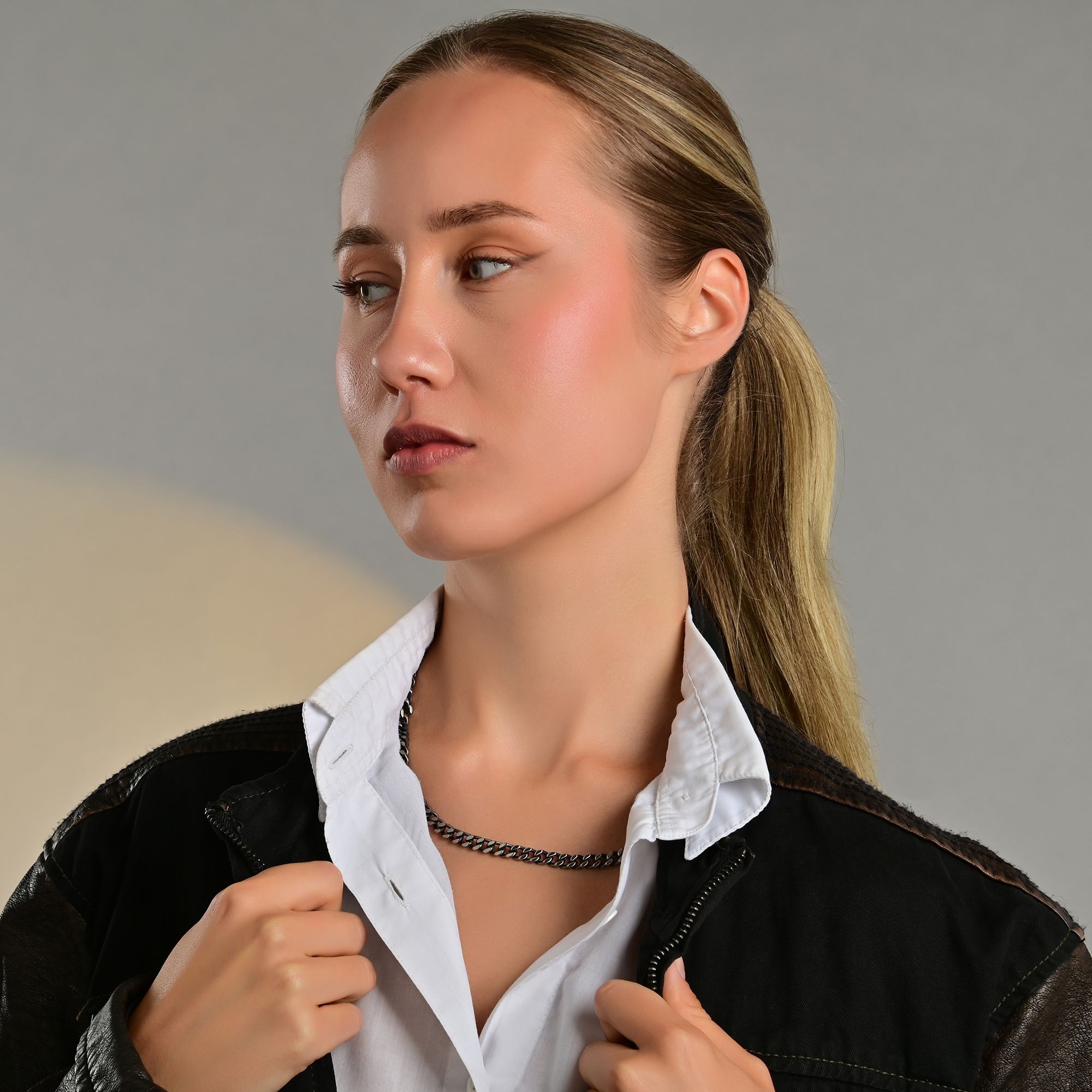 Produktinformationen "Akzent Flachpanzerkette aus Edelstahl, silberfarben, geschwärzt, Breite 6mm, Länge 60cm"