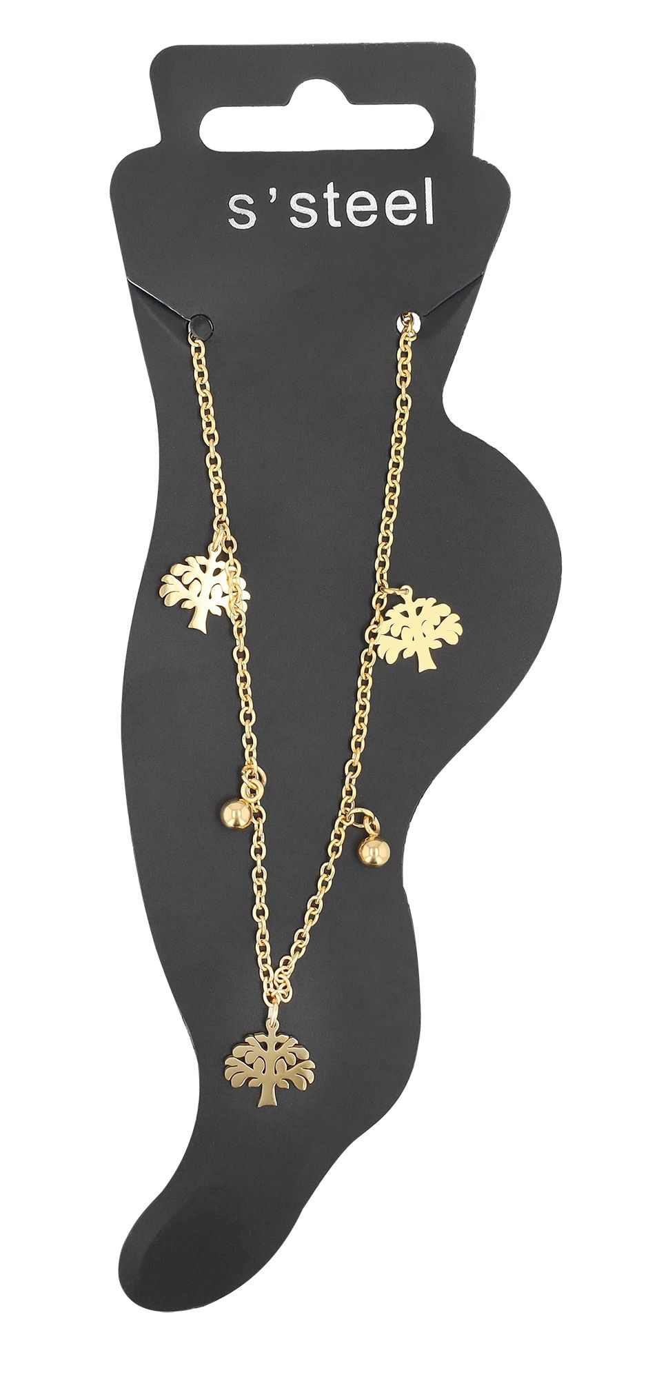 Das Besondere sind die charmanten Anhänger. Zwei Symbole schmücken diese Fußkette: der Lebensbaum und die Kugelanhänger. Der Lebensbaum steht für Wachstum, Stärke und Harmonie, während die Kugelanhänger eine zeitlose Eleganz ausstrahlen.