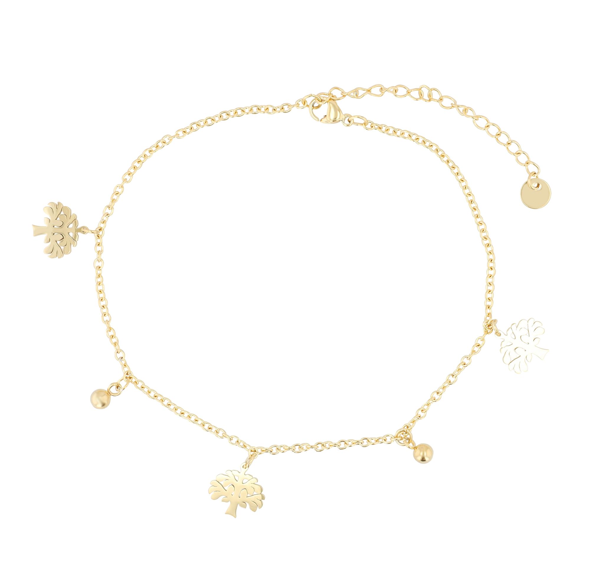 Produktinformationen "Akzent Fußkette "Ysoria", Lebensbaum- und Kugelanhänger, goldfarben"