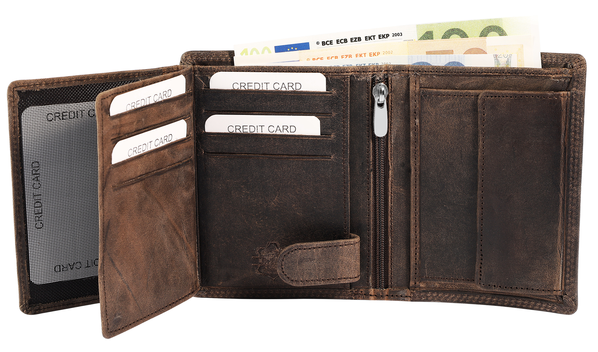 Die Geldbörse der Marke Akzent wurde im Hochformat aus Echtleder hergestellt und zeigt sich durch die Prägung in Form eines Segelschiffes im unverkennbarem Design. Die Geldbörse ist ein wahres Platzwunder und bietet viel Stauraum für alle wichtigen Dokumente. Die Doppelnaht im Außen- und Innenbereich sorgt für eine gute Haltbarkeit und Stabilität. Durch die komfortable Einteilung verfügt sie über 9 Kreditkartenfächer, 2 Geldscheinfächer, 1 Münzfach mit Druckknopfverschluss, 1 Reißverschlussfach im inneren Bereich, 2 Einsteckfächer und 3 transparente Ausweisfächer und mittels eines extra Druckknopfverschluss im Innern werden die Karten sicher verwahrt. Die Größe ergibt sich ungefüllt aus einer Länge von 9 cm, einer Breite von 12 cm und einer Stärke von 2 cm. Ein tolles Accessoire mit optimaler Größe für den täglichen Gebrauch.
