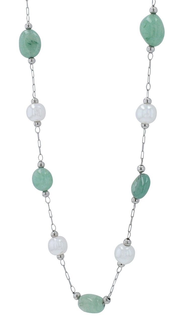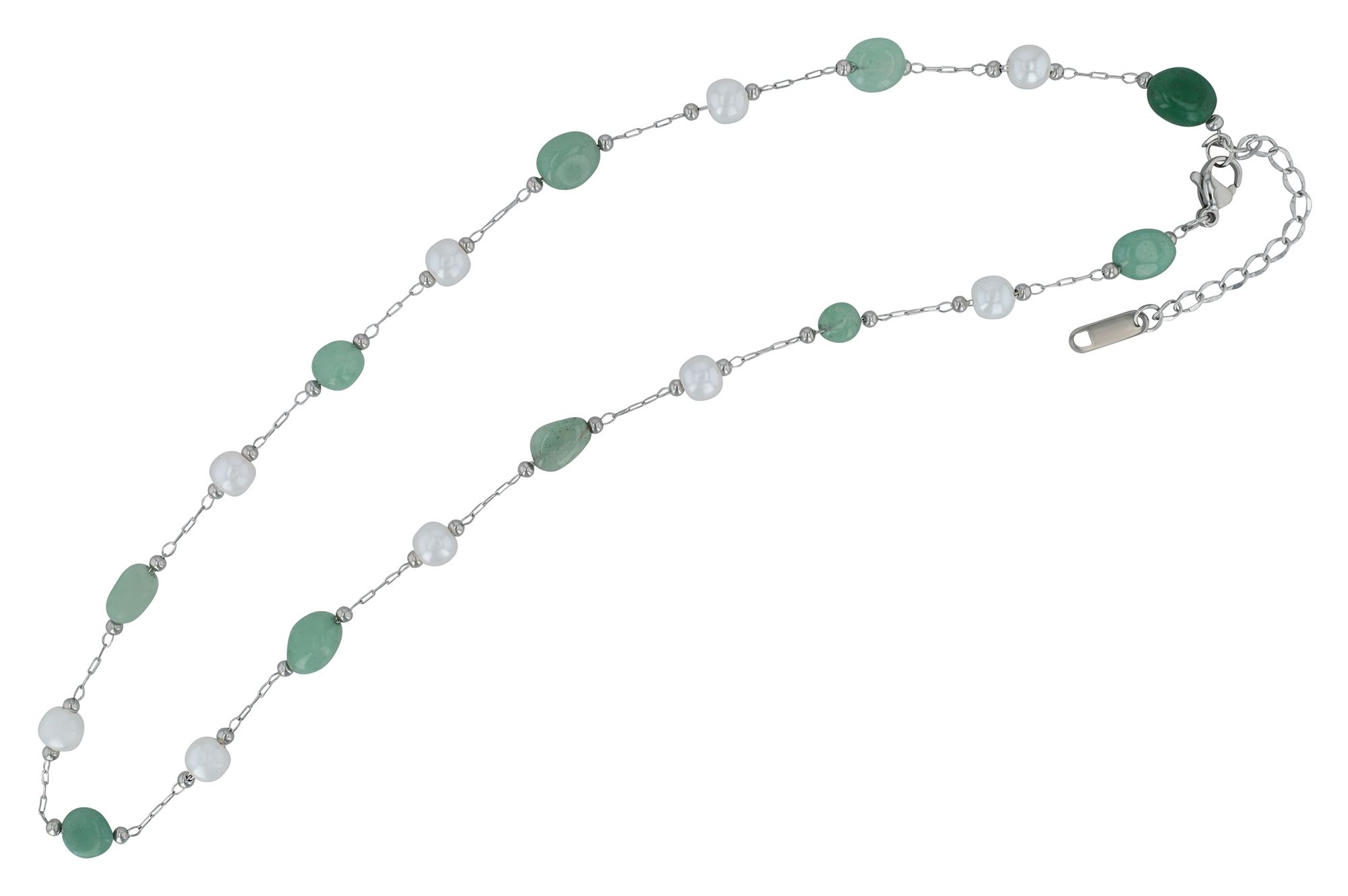 Produktinformationen "Akzent Halskette "Asude", Edelstahl, Süßwasserperlen und Natursteine"
