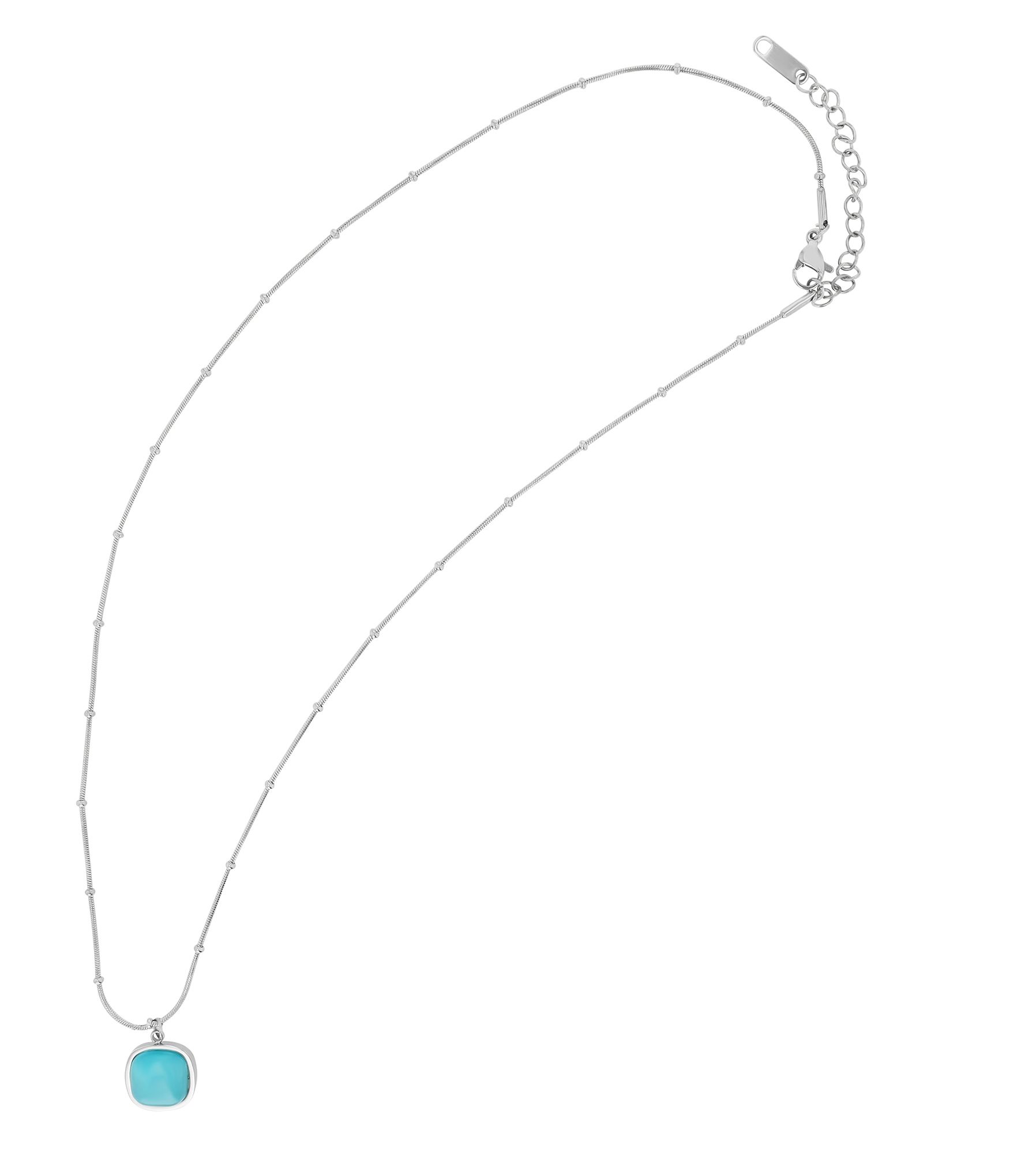 Gefertigt aus hochwertigem Edelstahl verkörpert die Halskette nicht nur zeitlose Eleganz, sondern auch Langlebigkeit und Beständigkeit. Das Material ist resistent gegen Korrosion und Anlaufen, was sicherstellt, dass die Kette auch nach längerem Tragen ihre strahlende Schönheit bewahrt. Die Kette erstreckt sich über eine Länge von 43 cm, mit einer zusätzlichen 5 cm Verlängerungskette, die die Möglichkeit gibt, die Länge individuell anzupassen. Das Herzstück dieser Halskette ist der 14 x 12 x 5 mm große Anhänger mit einem blauen Steinbesatz. Die Silberfarbe der Kette bildet einen ansprechenden Kontrast zum strahlenden Blau des Anhängers und schafft so eine ausgewogene und auffällige Optik.