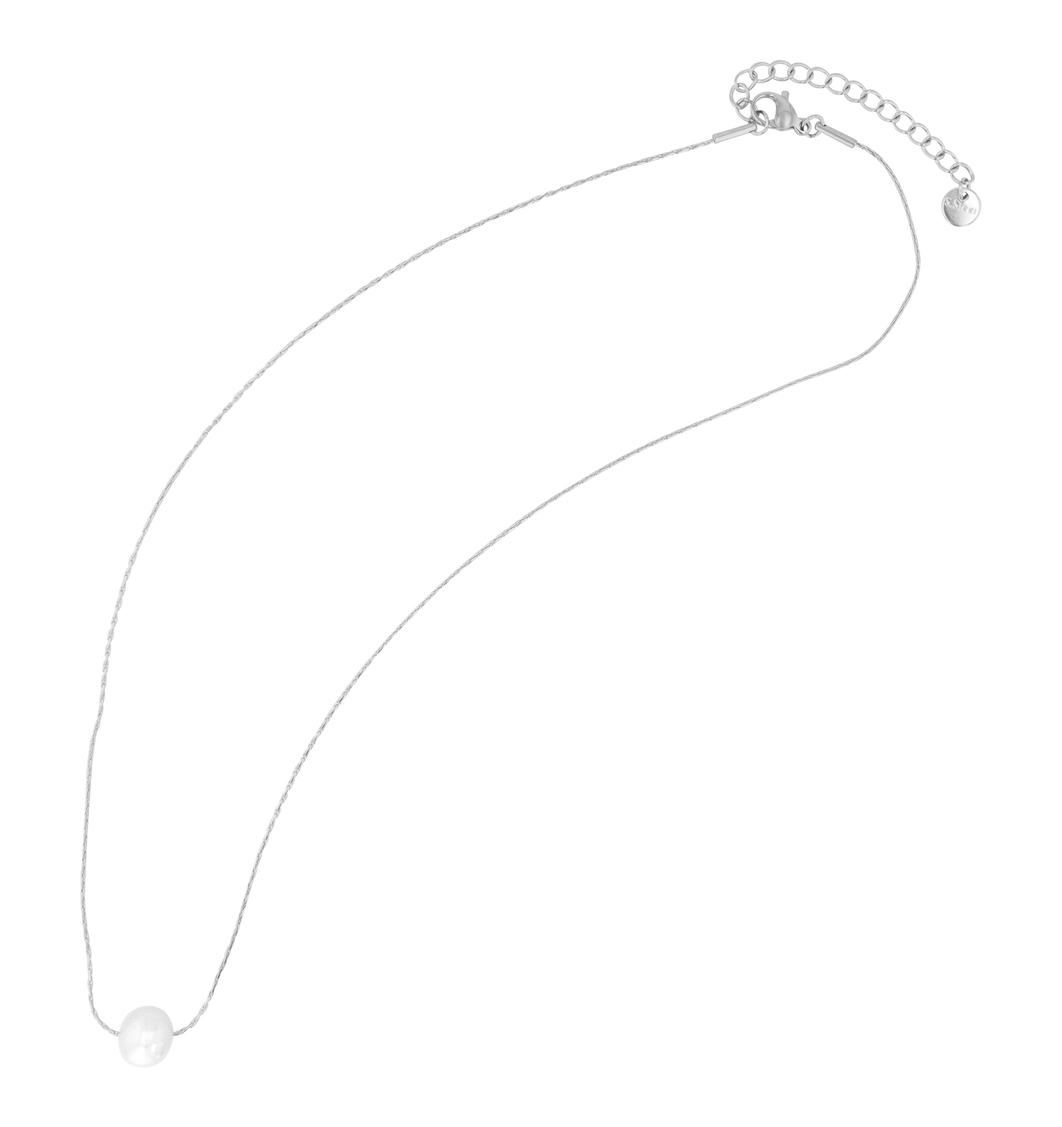 Produktinformationen "Akzent Halskette "Indra" mit Perle, Edelstahl, 43+5 cm, silberfarben"