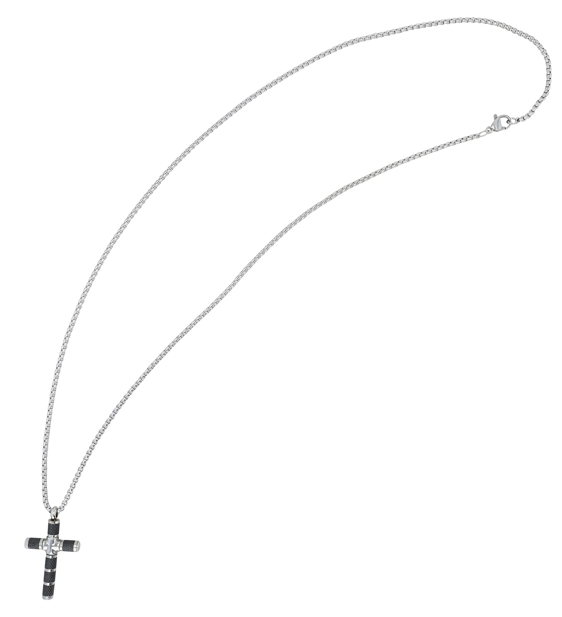Moderne Ästhetik mit unserer Akzent Erbskette, geschmückt von einem einzigartigen Kreuzanhänger, der ein drehbares Element besitzt und somit auch spielerisch interaktiv ist. Mit einer Größe von 34 x 20 mm setzt er sich gekonnt in Szene und ein modisches Statement. Aus hochwertigem Edelstahl gefertigt, präsentiert sich dieses Schmuckstück als robust und stilvoll, ideal für den täglichen Gebrauch sowie besondere Anlässe. Die Halskette misst 55 cm in der Länge und 2 mm in der Stärke, was eine perfekte Balance zwischen Tragekomfort und Präsenz schafft. Der praktische Karabinerhaken ermöglicht ein müheloses An- und Ablegen und garantiert, dass die Kette stets sicher um den Hals sitzt.