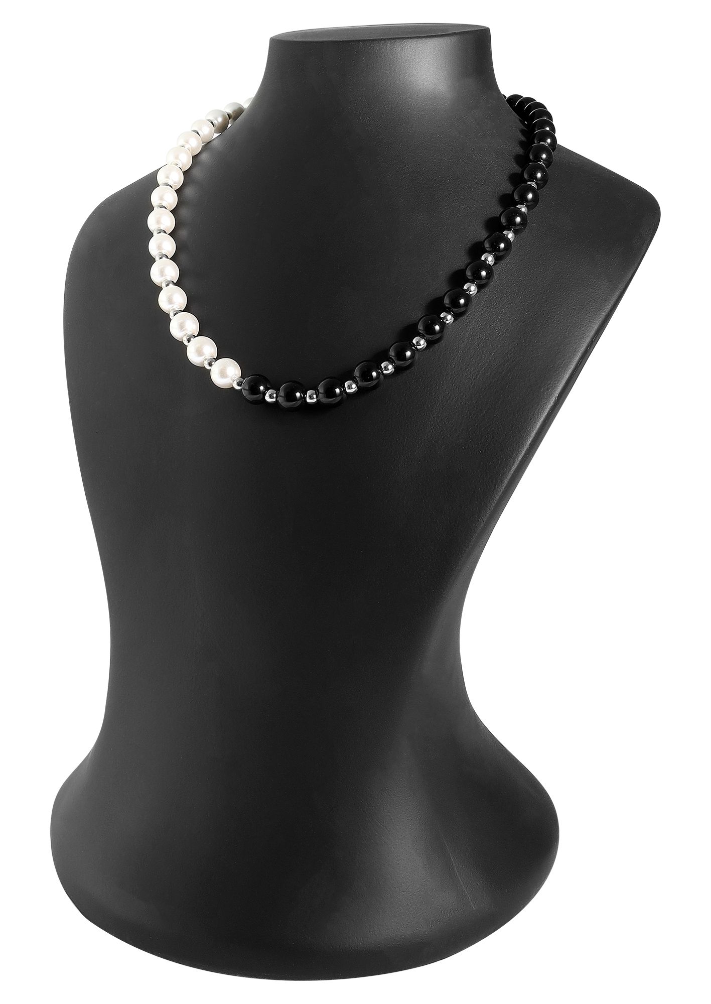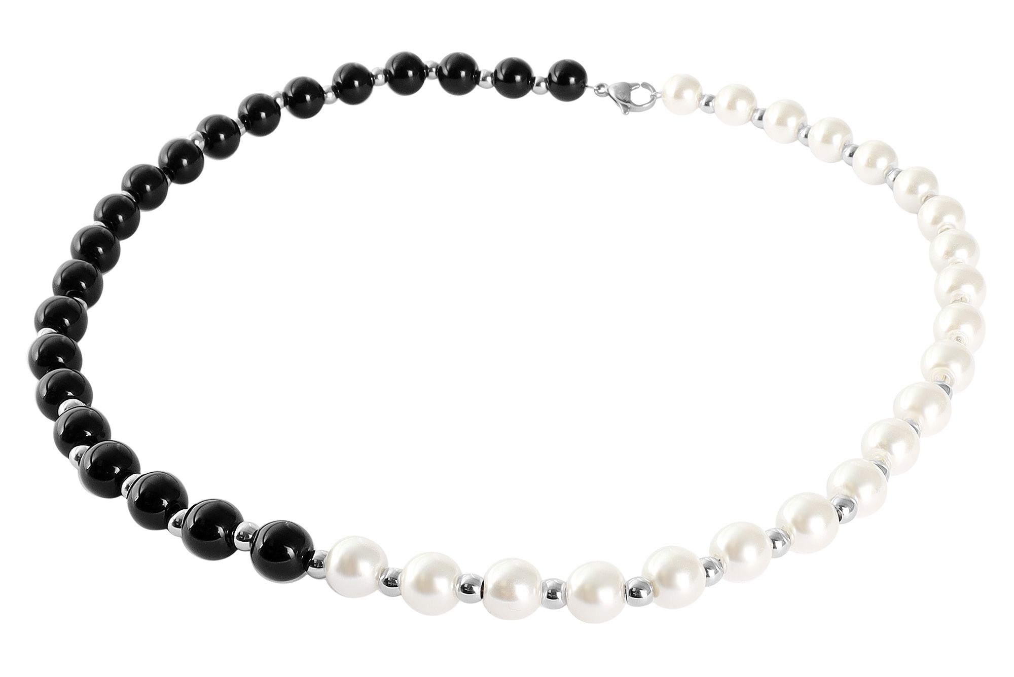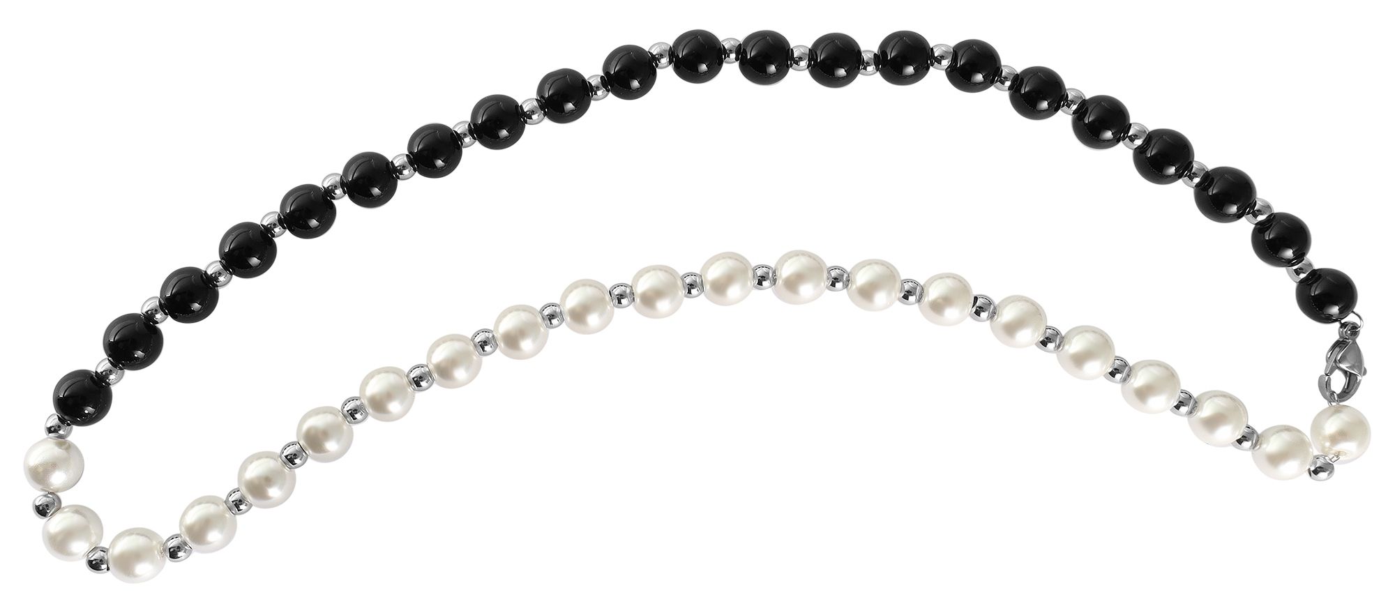 Mit einer Länge von 45 cm präsentiert sich die Kette perfekt am Dekolleté und wird mit einem sicheren Karabinerhaken verschlossen, der beim Tragen ein Gefühl von Sicherheit gibt und sich leichthändig bedienen lässt. Die geschmackvolle Kombination aus Schwarz und Weiß ermöglichen endlose Styling-Möglichkeiten. Die Halskette ist nicht nur ein Accessoire, sondern ein Ausdruck von Individualität. Lassen Sie sich von der fesselnden Schönheit verzaubern und entdecken Sie noch viele weitere tolle Produkte in unserem Online Shop!