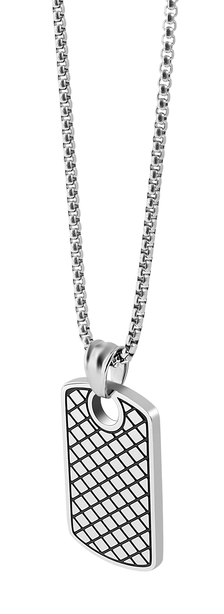 Der Dog Tag Anhänger, in seiner klassischen rechteckigen Form fasziniert auf den ersten Blick. Mit seinen sanften Kurven und der faszinierenden Struktur auf der Vorderseite wird er mit einer Abmessung von 36 x 21 x 2 mm zu einem unverkennbaren Blickfang. Die Rückseite des Anhängers ist gravierbar und bietet die Möglichkeit, eine Botschaft, ein Datum oder ein Symbol zu verewigen. Die 61 cm lange und 2 mm starke Erbskette schmiegt sich sanft um den Hals und wird mit einem sicheren Karabinerhaken verschlossen.