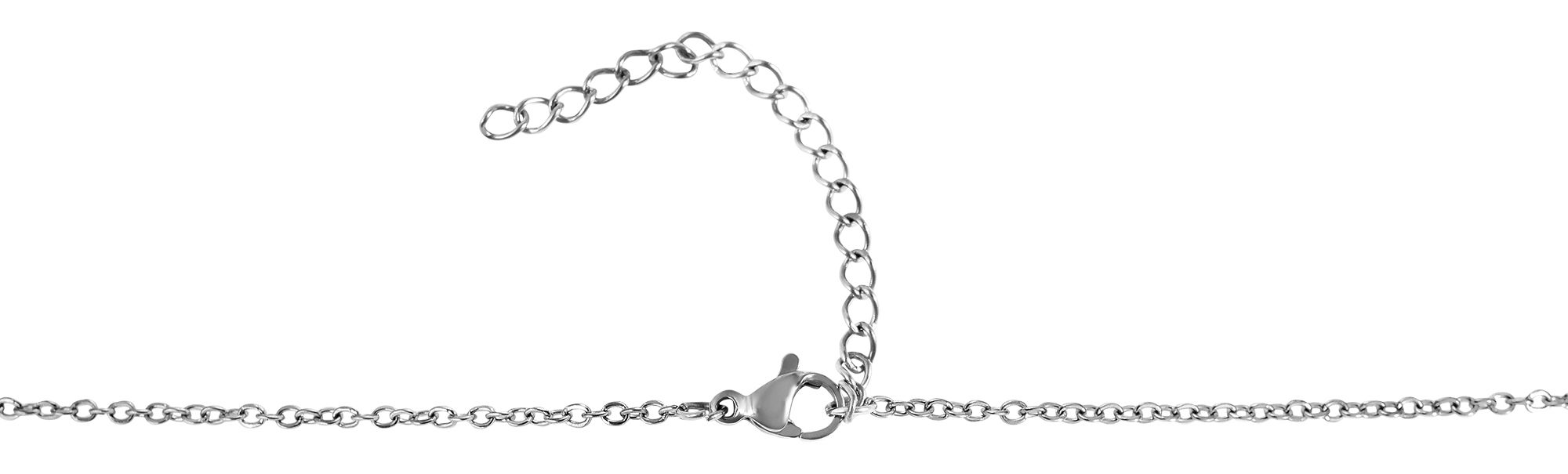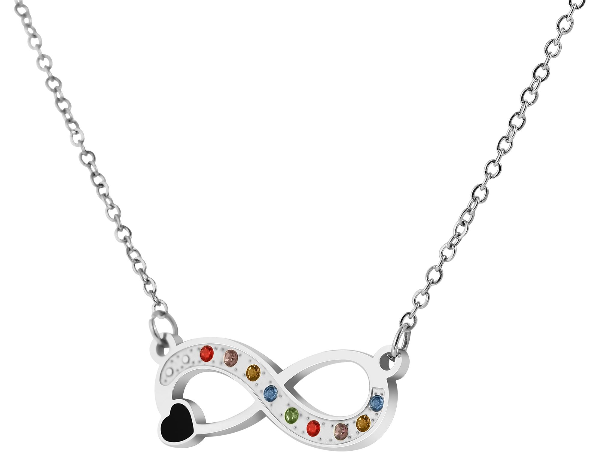 Die Halskette der Marke Akzent ist aus Edelstahl im Ankermuster gefertigt. An der Kette ist ein Anhänger in Form eines Unendlichkeitszeichen angebracht. Dieser besteht ebenfalls aus Edelstahl und ist mit bunten Similisteinen verziert. Das Material ist sehr robust, langlebig und eignet sich ideal für Allergiker, da sich Edelstahl als besonders hautverträglich erweist. Öffnen und schließen lässt sich die Schmuckkette mit einem Karabinerhaken, der für sicheren Halt sorgt und ein eigenständiges Öffnen verhindert. Zusätzlich ist eine 5 cm lange Verlängerungskette an das eine Ende der Kette angebracht, die es ermöglicht, die Länge um bis zu 5 cm zu variieren und sie so an jedes Outfit anpassen zu können. Die Maße ergeben sich aus einer Länge von 43 cm und einer Stärke von 1 mm. Der Kettenanhänger hat eine Länge von 10 mm, eine Breite von 30 mm und eine Stärke von 2 mm. Dieses Produkt wird auf einem weißen Schmuckkärtchen geliefert. Es hat eine Maße von 70 x 45 mm und eignet sich ideal zum Präsentieren in dem dazu geeigneten Display oder zum Verpacken als Geschenk. Die moderne Aufmachung dieser Halskette unterstreicht jeden Look perfekt und begeistert jede Altersgruppe.