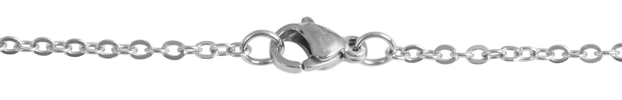 Die Halskette der Marke Akzent wurde im Ankermuster aus Edelstahl gefertigt. Das Material ist robust und garantiert eine lange Lebensdauer. Mit einem Edelstahl-Karabinerverschluss wird die Kette hinten am Hals gesichert. Die Länge der Kette beträgt 60 cm. Die Kettenstärke beträgt 1 mm. Zudem verfügt die Halskette über einen Anhänger aus Edelstahl in Form eines Kreuzes. Der Querbalken zeigt sich in mattierter Optik, der Längsbalken ist hochglanzpoliert. Die Anhängergröße ergibt sich aus einer Länge von 40 mm, einer Breite von 27 mm und einer Stärke von 7 mm und bietet dadurch genug Fläche um mit filigranen Gravuren versehen zu werden.