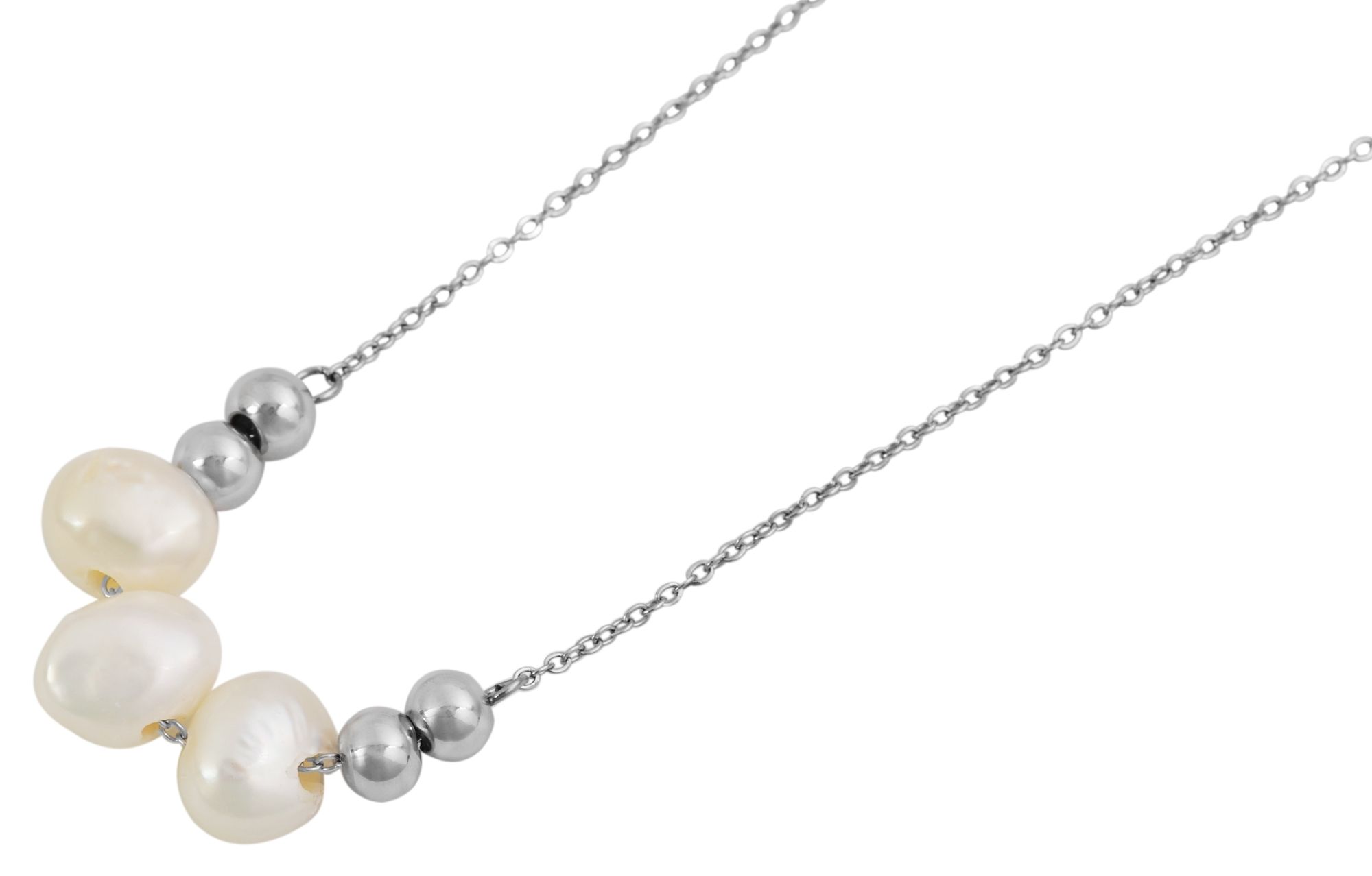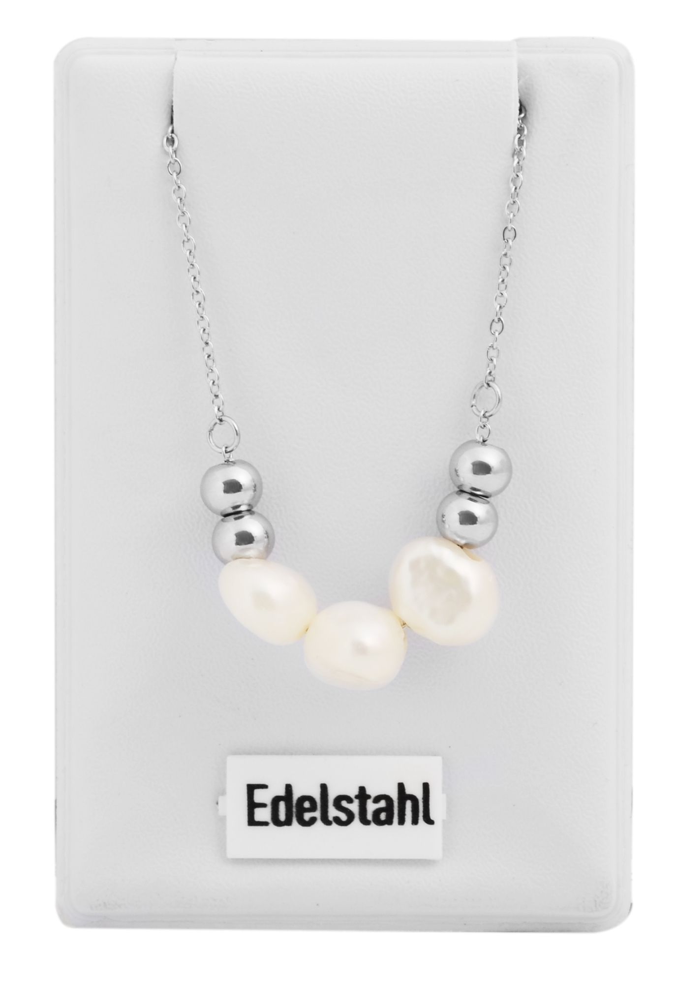 Produktinformationen "Akzent Halskette mit Perlen, Edelstahl, 43+5 cm, silberfarben"