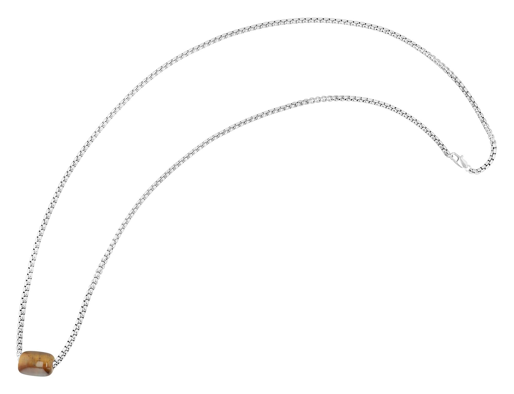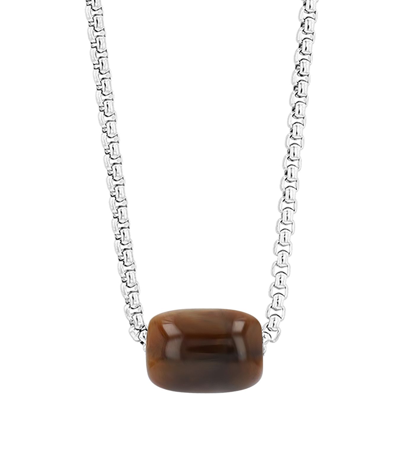 Unsere Akzent Halskette mit Natursteinanhänger – eine harmonische Verbindung von zeitgemäßem Design und der Kraft der Natur. Diese Halskette ist aus hochwertigem Edelstahl gefertigt, was nicht nur für Langlebigkeit, sondern auch für eine zeitlose Eleganz steht. Die Kette erstreckt sich über eine Länge von 61 cm und hat eine Stärke von 2,5 mm. Der Karabinerverschluss garantiert nicht nur einen festen Halt, sondern sorgt auch für müheloses An- und Ablegen. Die Vielfalt dieser Halskette zeigt sich in den verschiedenen Farboptionen und den unterschiedlichen Natursteinen. Der Natursteinanhänger, mit einer Größe von 10 x 15 mm, wird zum Highlight dieser Kette. Jeder Anhänger ist einzigartig in Farbe und Muster und wird zum absoluten Blickfang.