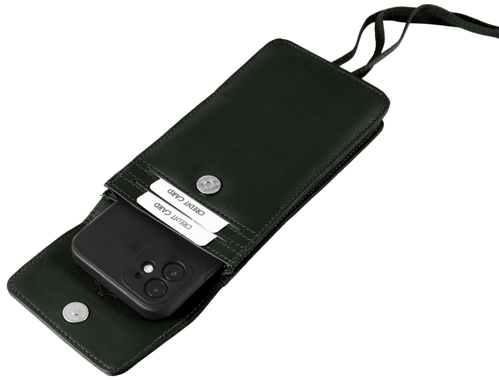 Produktinformationen "Akzent Handyumhängetasche mit Geldbörse, Echtleder, dunkelgrün"